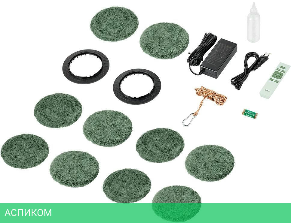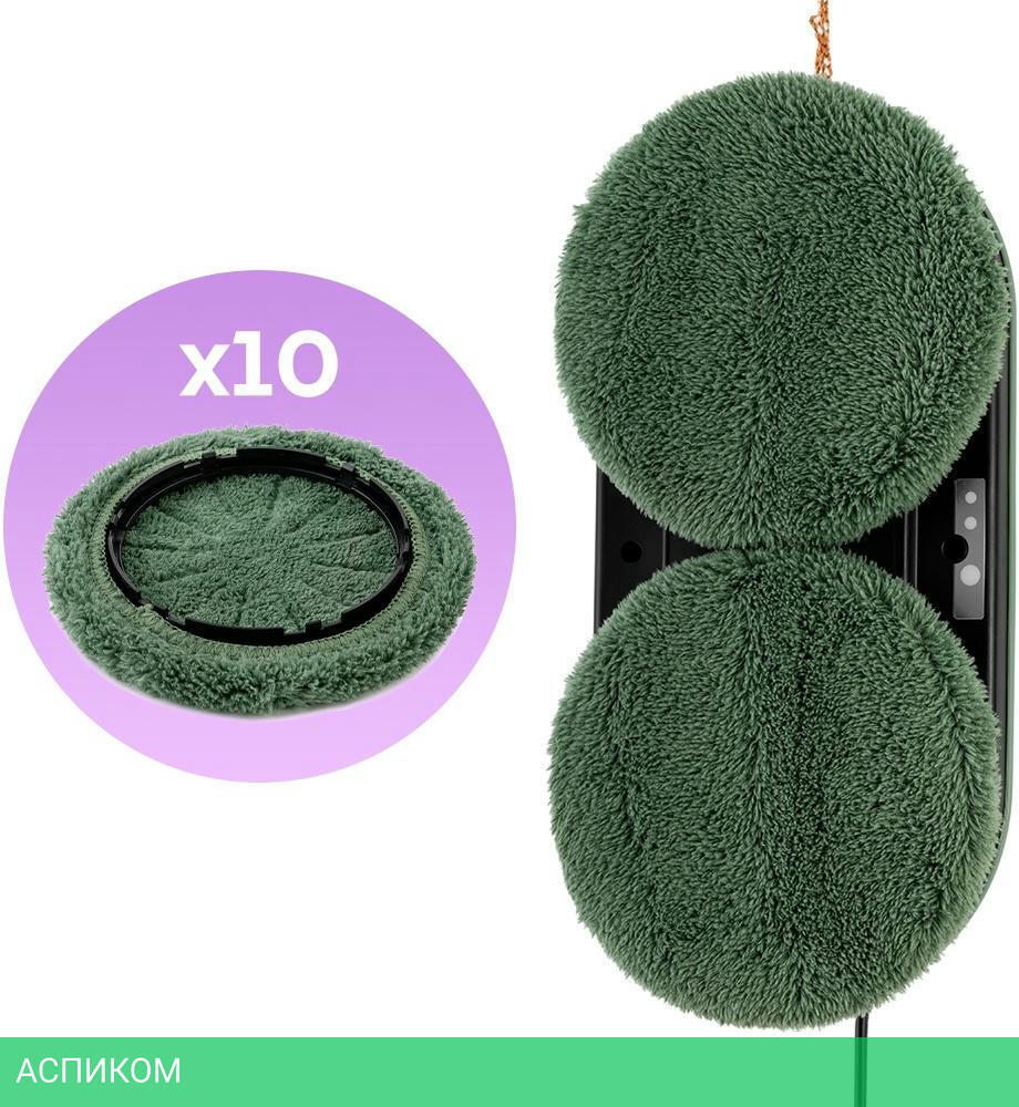 робот для мойки окон, бутылка для воды с крышкой, пульт ДУ, батарейки ААА - 2 шт., держатель тряпки - 4 шт., блок питания, шнур питания, страховочный тросс с карабином, тряпка - 10 шт.