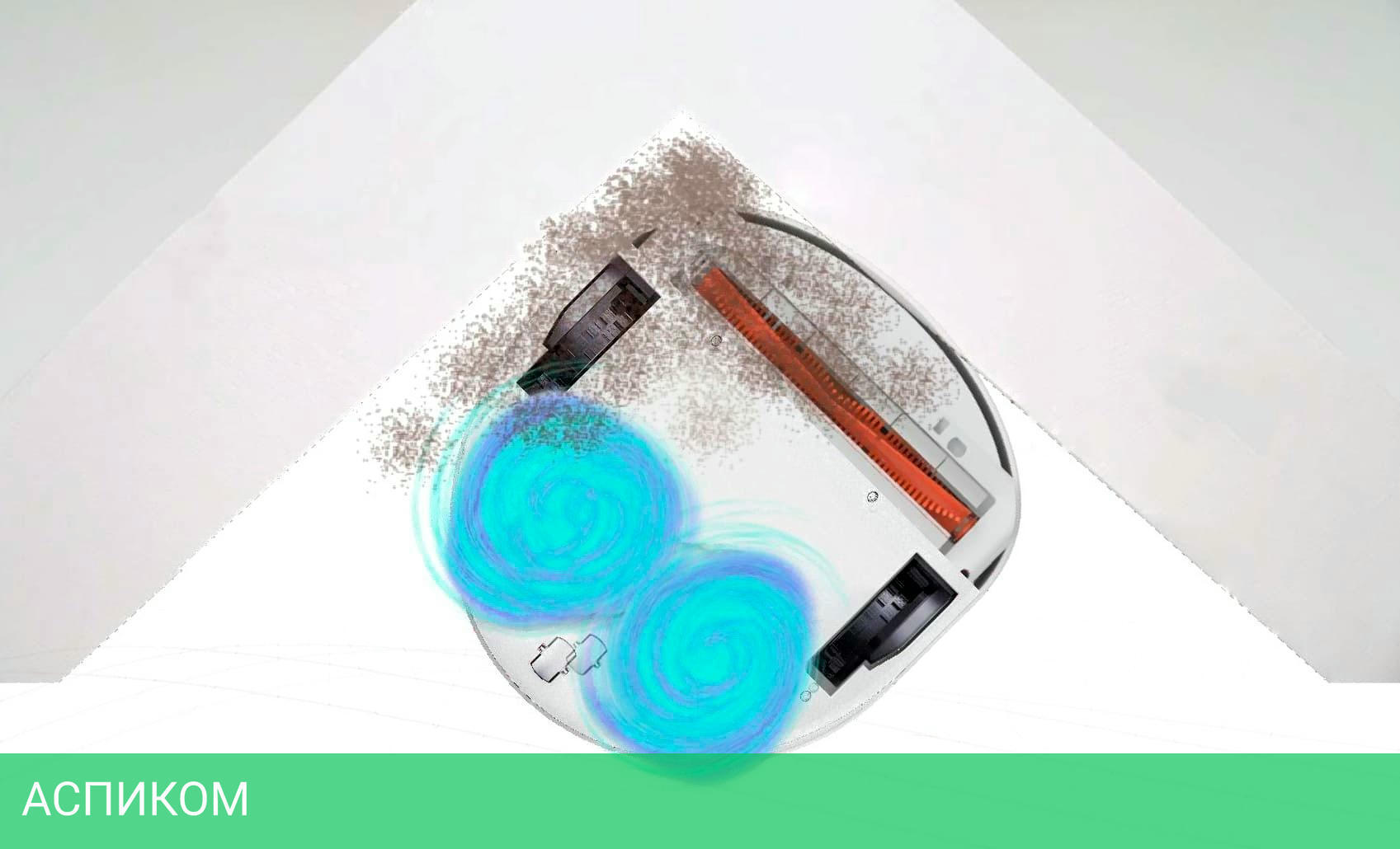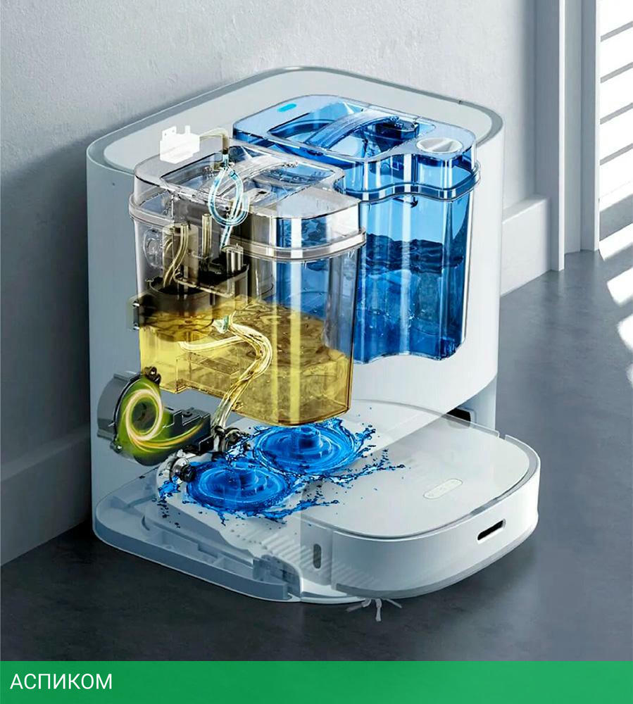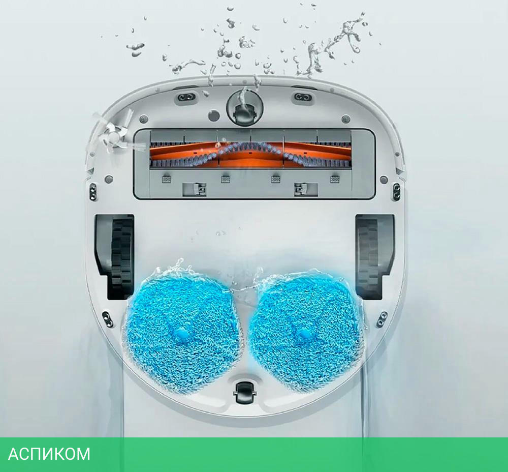 робот, зарядная станция, документация, кабель питания, 2 насадки для влажной уборки, боковая щетка, инструмент для очистки робота
