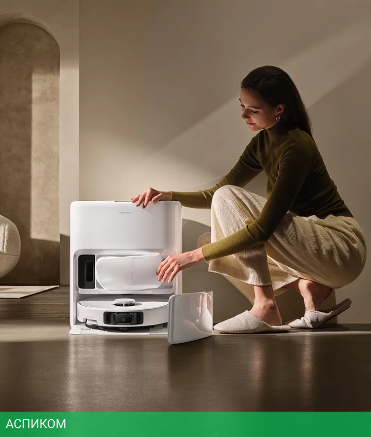 док-станция, рампа станции, мешок для пыли, чистящее средство, держатели тряпок, тряпки для уборки, отсек для средства, фильтр моющего отсека