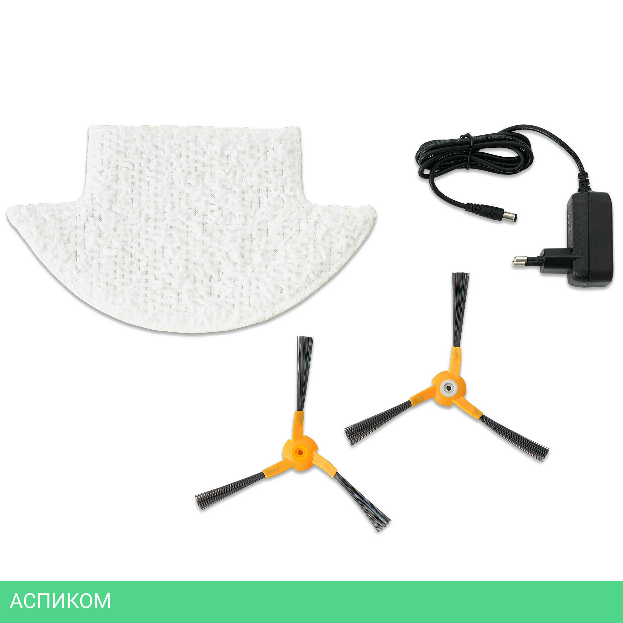 адаптер питания, боковая щетка (2 шт.), ткань для влажной уборки