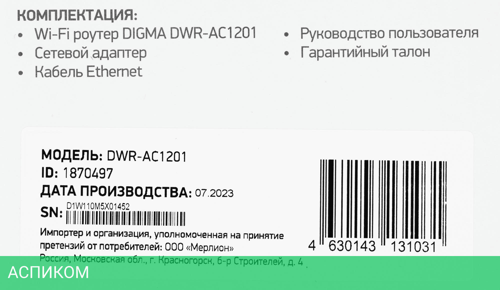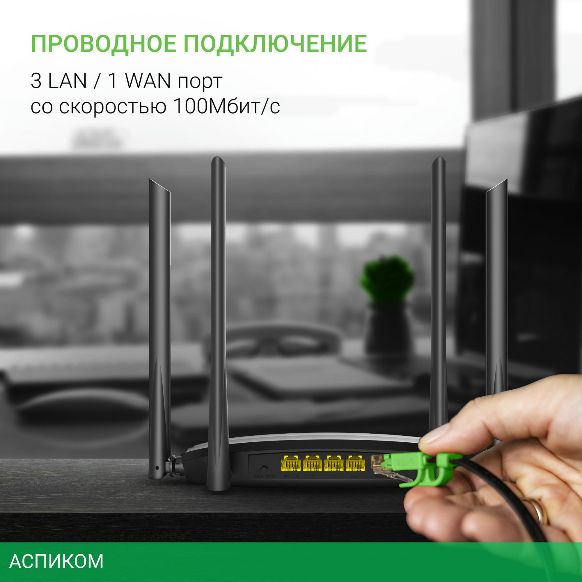 Wi-Fi роутер, сетевой адаптер (9 Вольт, 1А), кабель Ethernet, руководство пользователя.