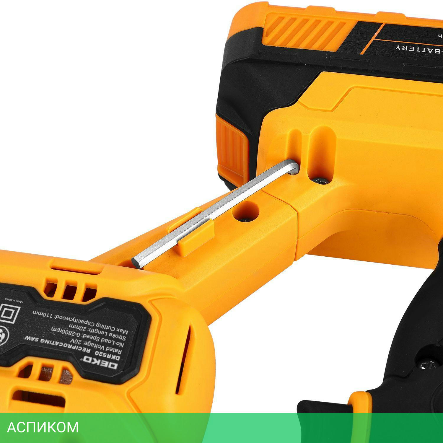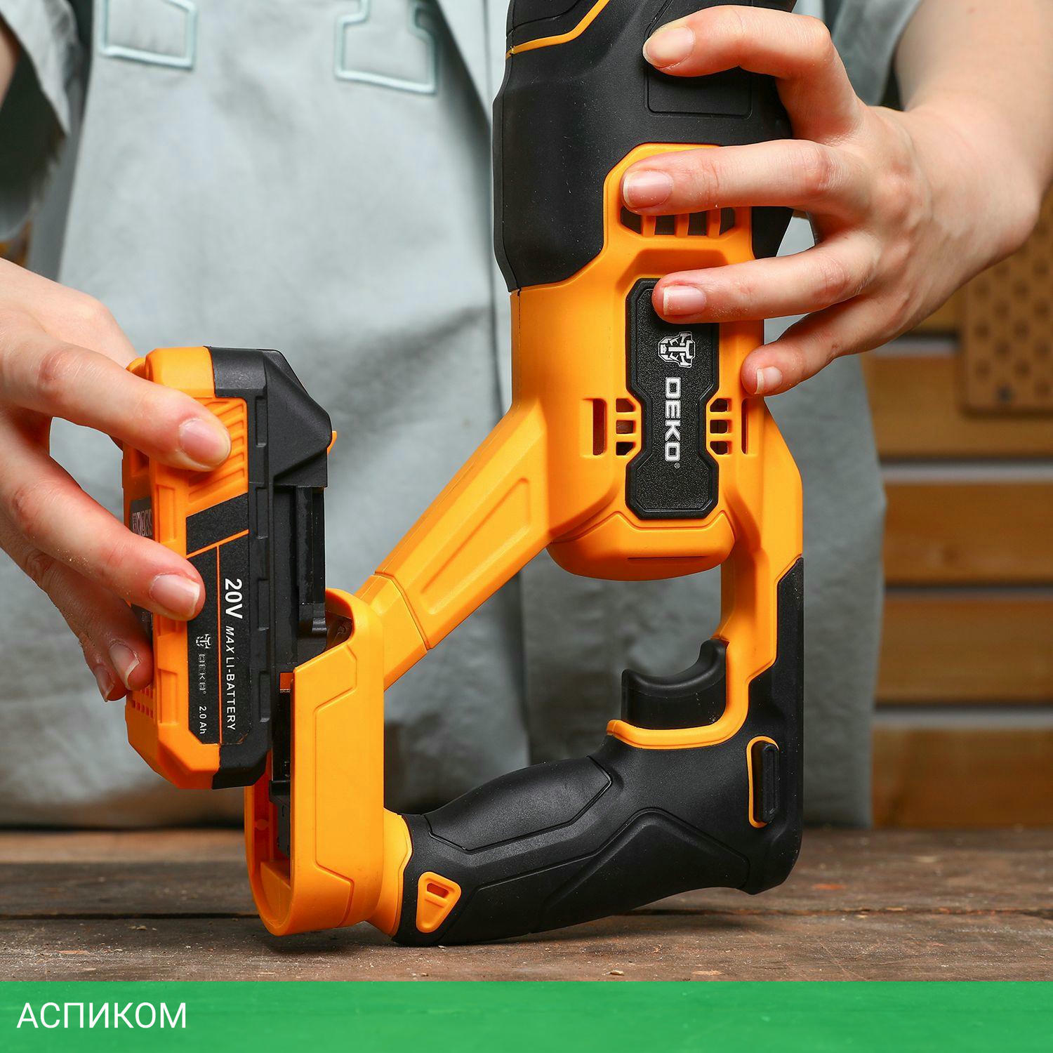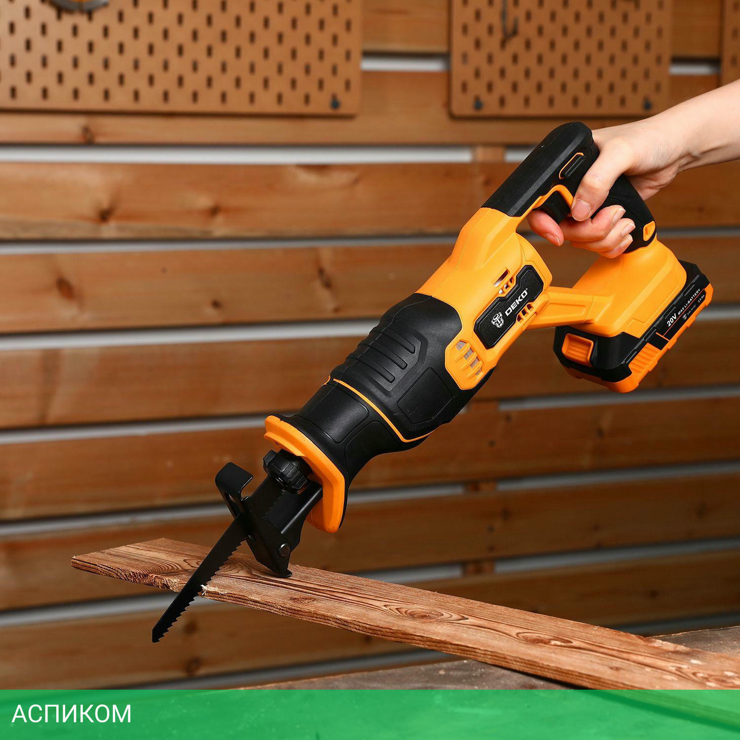 Сабельная пила, 2 шт. аккумулятор, пильное лезвие, зарядное устройство, шестигранный ключ.