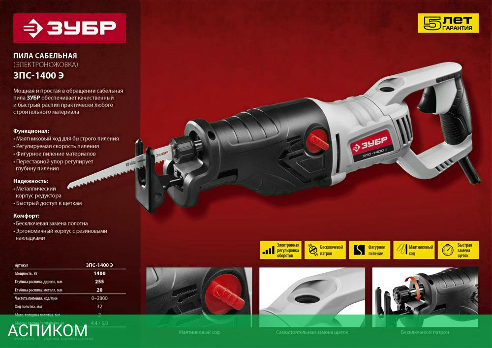 Мощное изделие для различных видов пиления Маятниковый ход для быстрого чернового распила заготовок Бесключевой патрон облегчает смену полотна Регулируемая частота ходов помогает подобрать оптимальный режим работы для каждого материала
