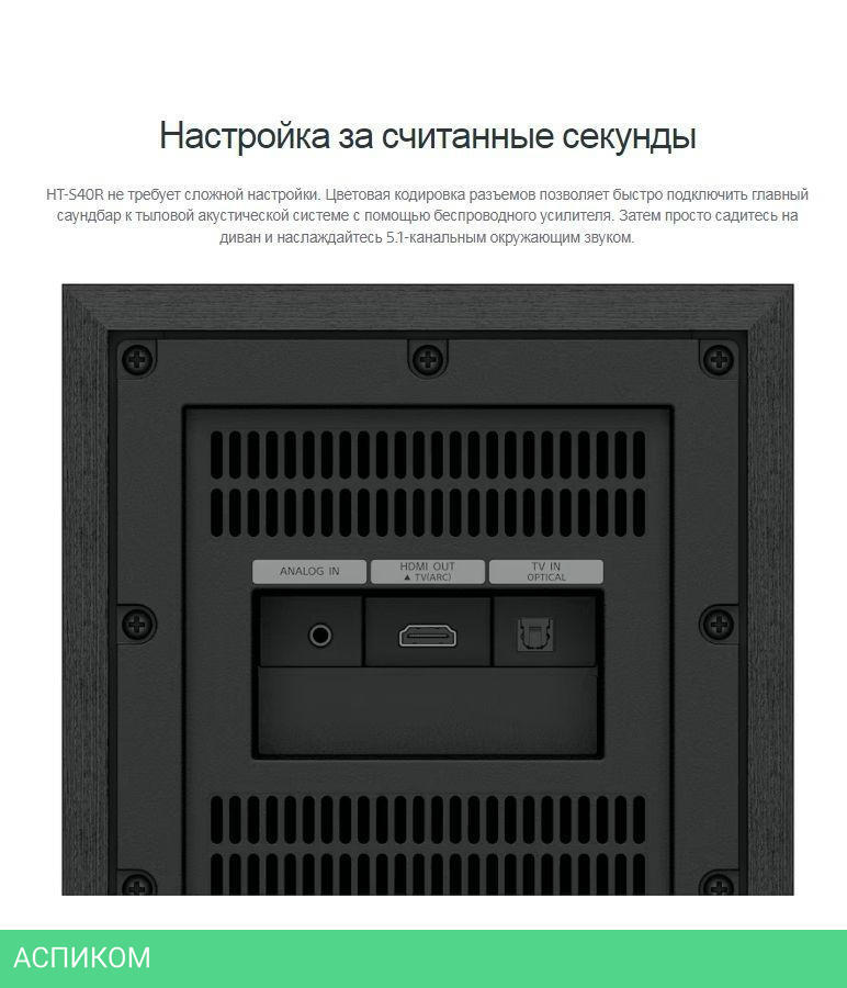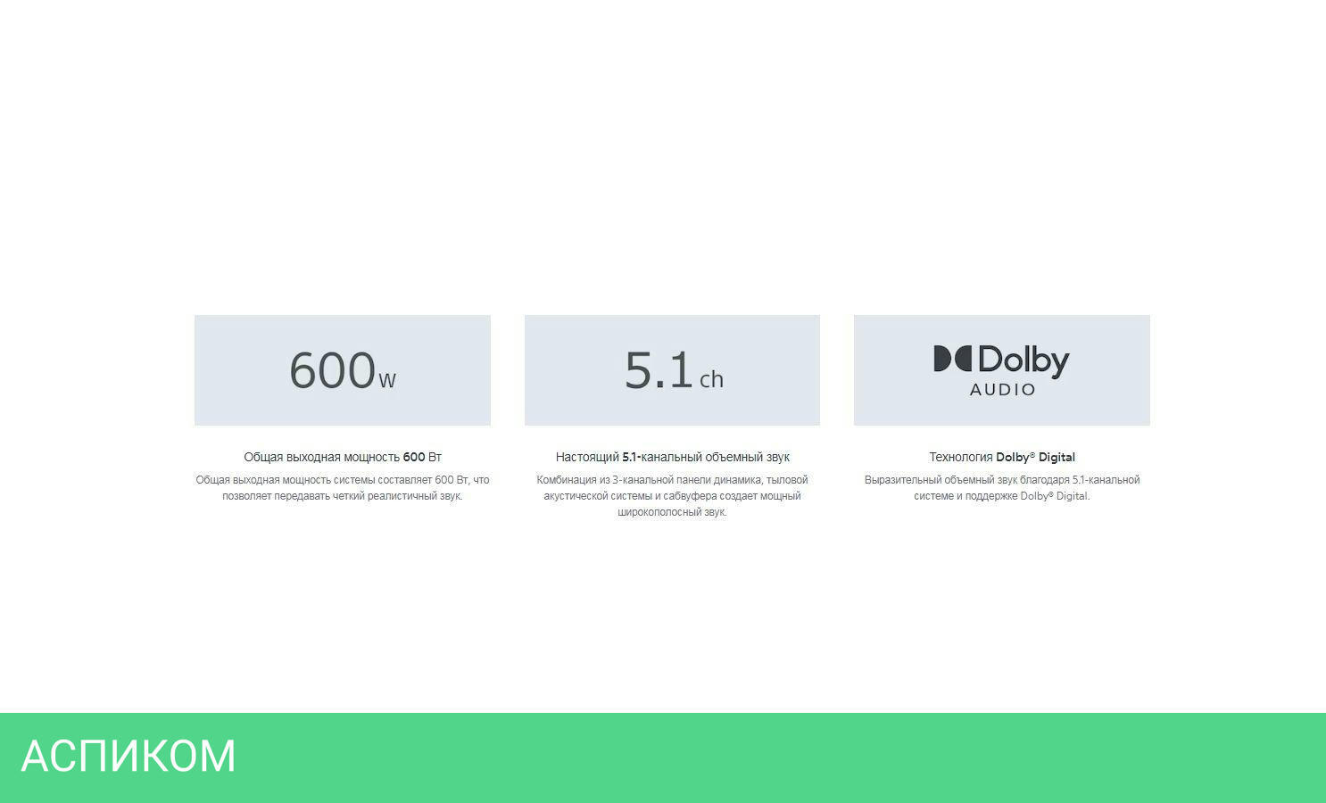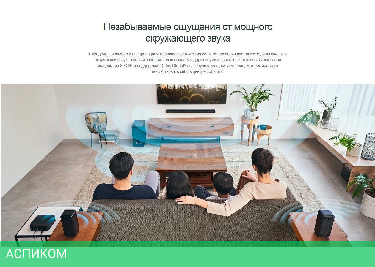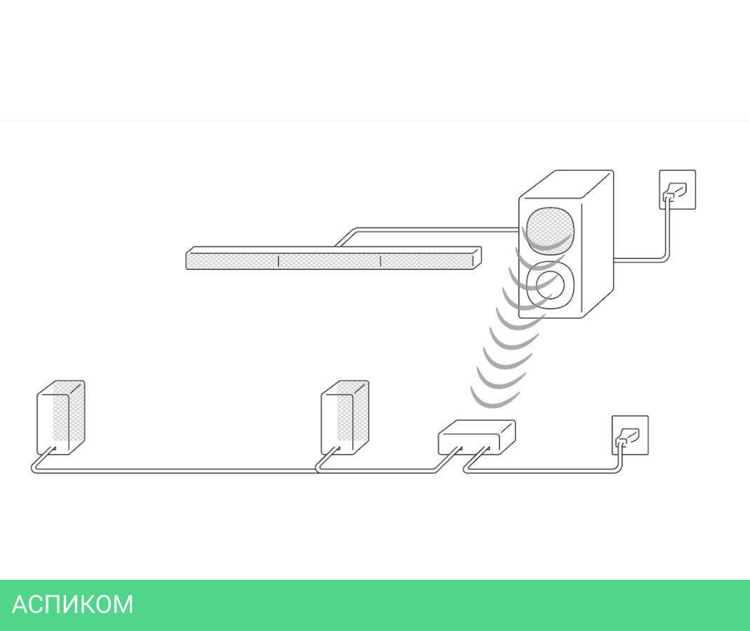 звуковая панель; беспроводной модуль; проводной сабвуфер; тыловые колонки