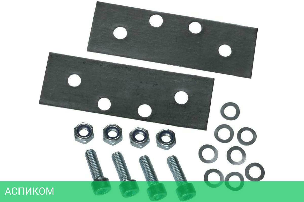 1 x лезвие 152x180x1.5 мм, 1 x зажимная пластина, 4 x гайки, 4 x болта с потайной головкой, упаковка