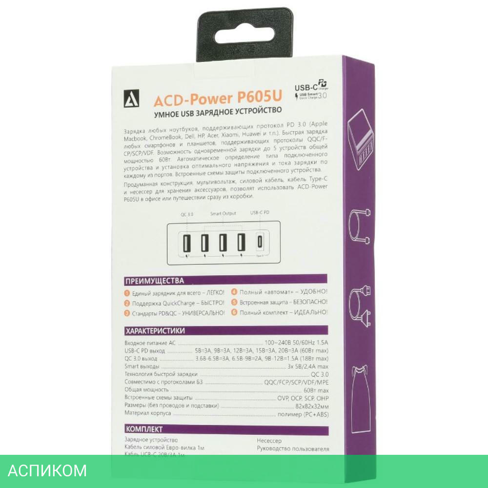 сетевое зарядное / для планшетов; для телефонов / 5 / отсутствует (нужен кабель) / черный / USB Type-A; USB Type-C / 60.0 / да / 1.0