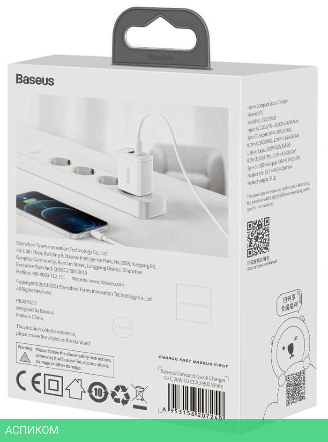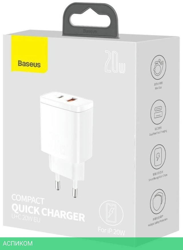 сетевое зарядное / для планшетов; для телефонов / 2 / отсутствует (нужен кабель) / USB Type-A; USB Type-C / 20.0 / да / белый