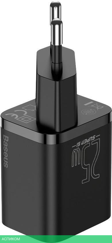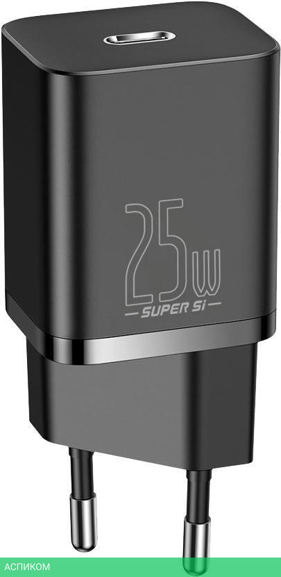сетевое зарядное / для планшетов; для телефонов / 1 / отсутствует (нужен кабель) / USB Type-C / 25.0 / да / черный