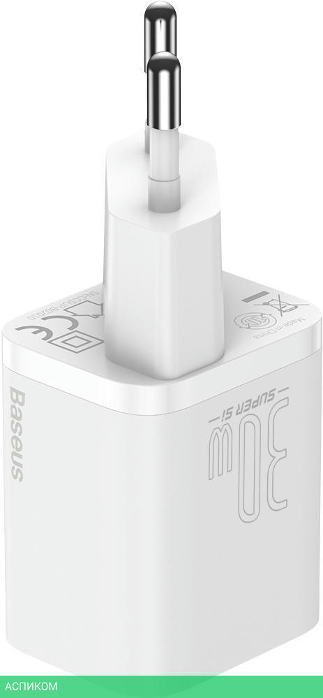 сетевое зарядное / для планшетов; для телефонов / 1 / отсутствует (нужен кабель) / USB Type-C / 30.0 / да / белый