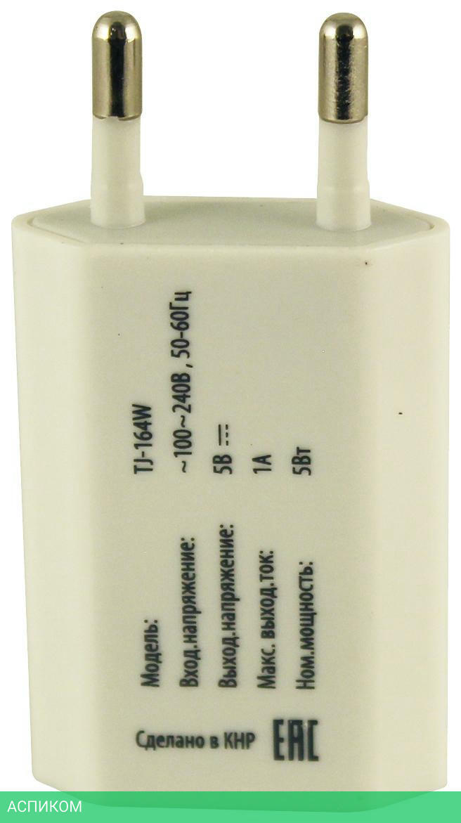 сетевое зарядное / для планшетов; для телефонов / 1 / отсутствует (нужен кабель) / белый / USB Type-A / 5.0 / нет