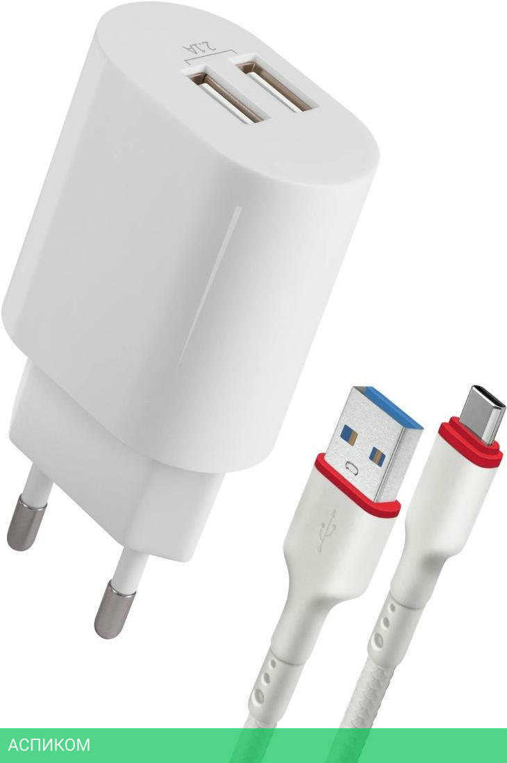 сетевое зарядное / белый / для планшетов; для телефонов / 2 / USB Type-C / USB Type-A / 10.5 / нет / 1.0
