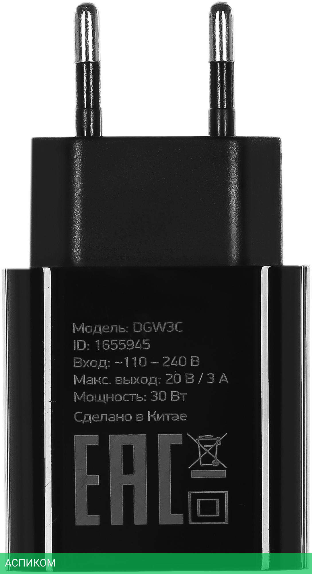 сетевое зарядное / универсальное / 1 / отсутствует (нужен кабель) / черный / USB Type-C / 30.0 / да