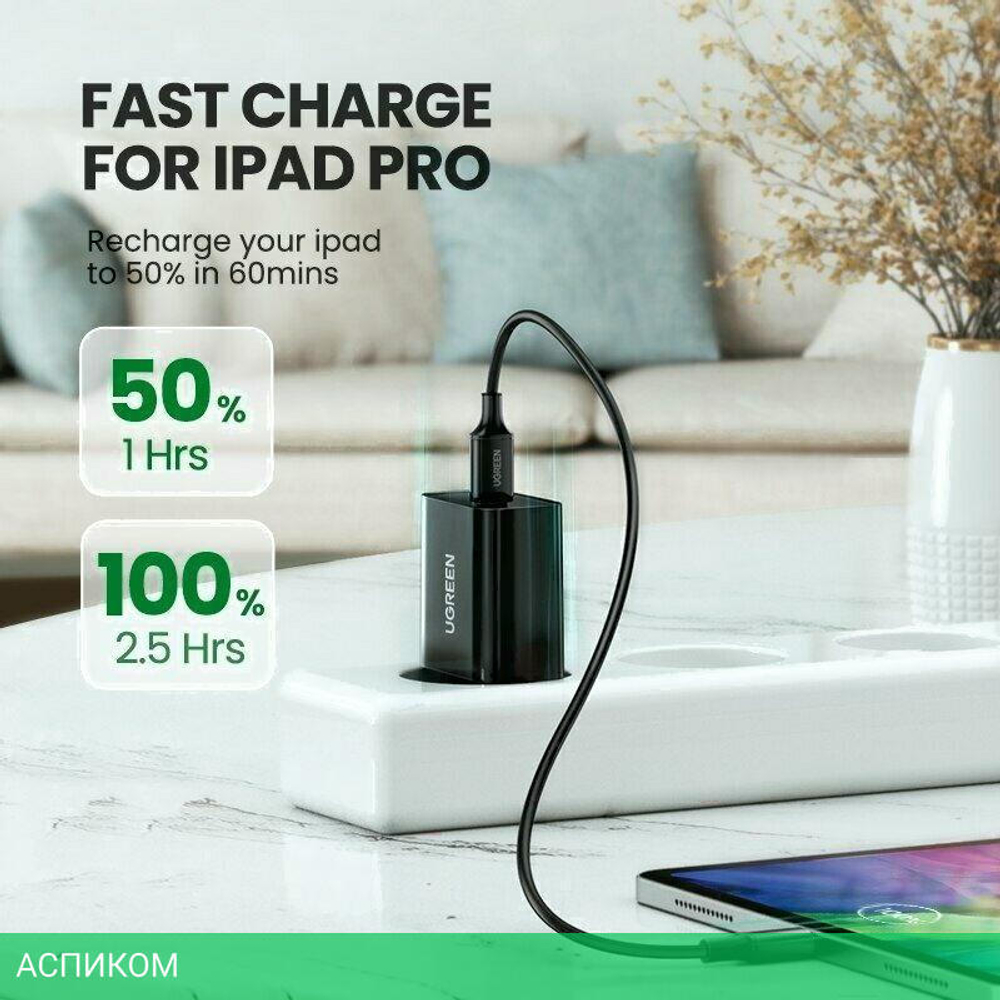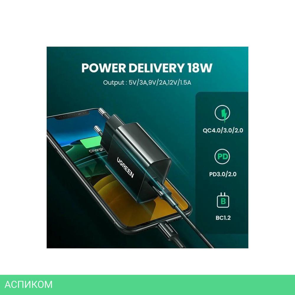 сетевое зарядное / черный / для телефонов; для планшетов / 1 / отсутствует (нужен кабель) / USB Type-C / 18.0 / да