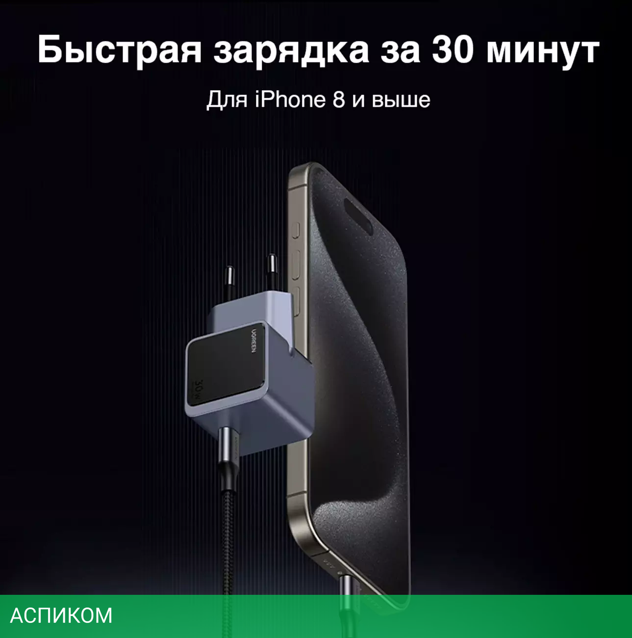 сетевое зарядное / серый / универсальное / 1 / отсутствует (нужен кабель) / USB Type-C / 30.0 / да