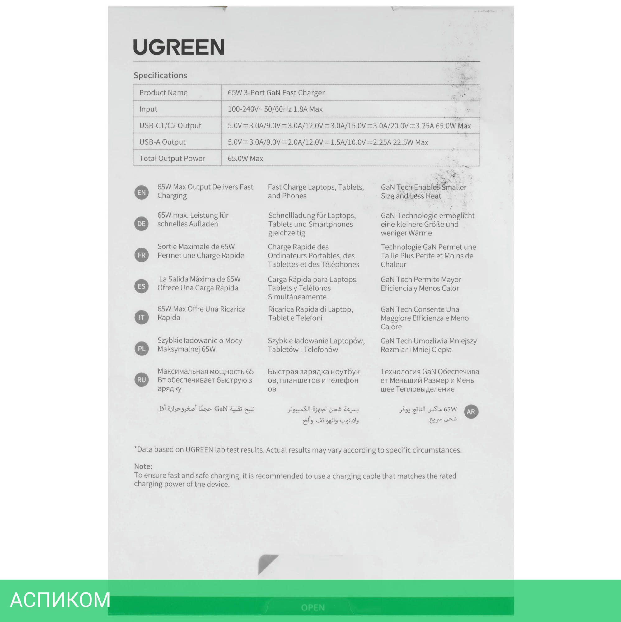 сетевое зарядное / серый / универсальное / 3 / отсутствует (нужен кабель) / USB Type-C / 65.0 / да
