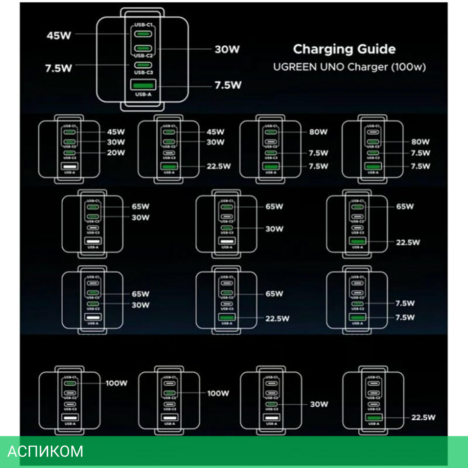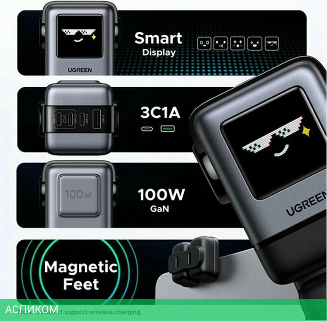 сетевое зарядное / черный; серый / для ноутбуков; для планшетов; для телефонов / 4 / отсутствует (нужен кабель) / USB Type-A; USB Type-C / 100.0 / да