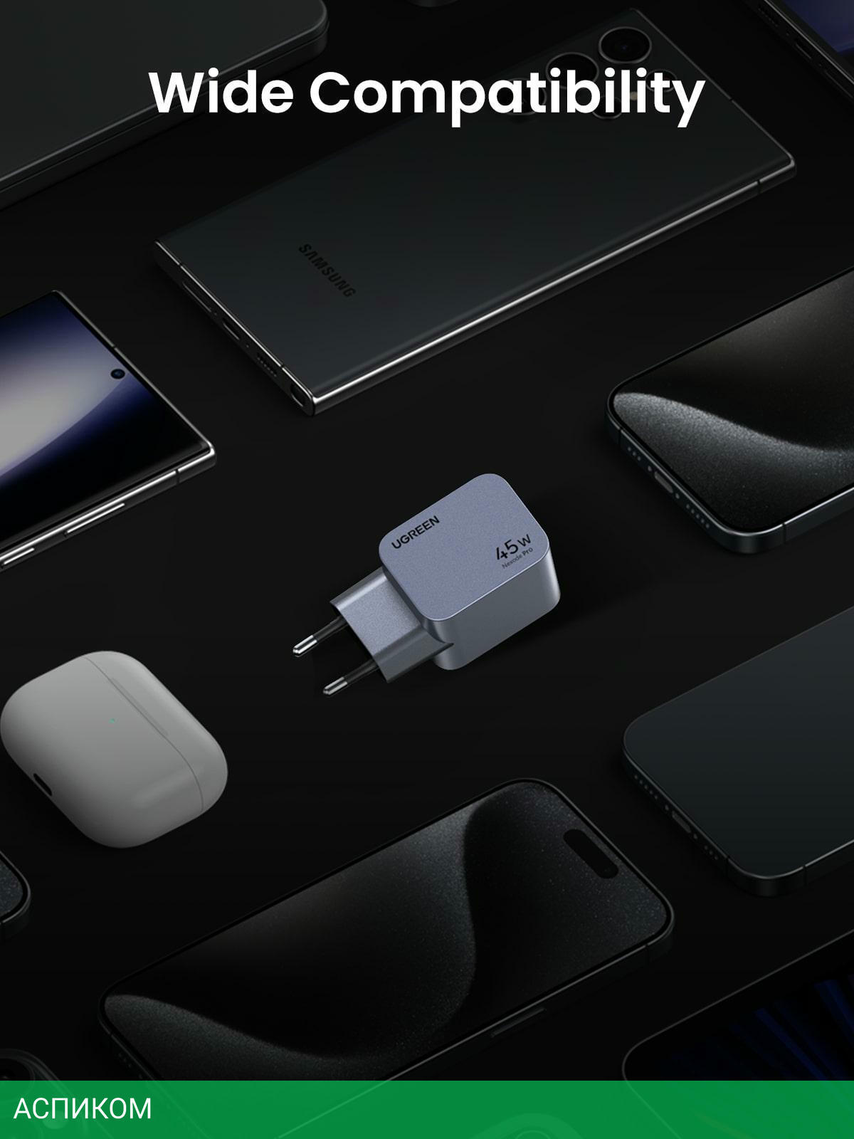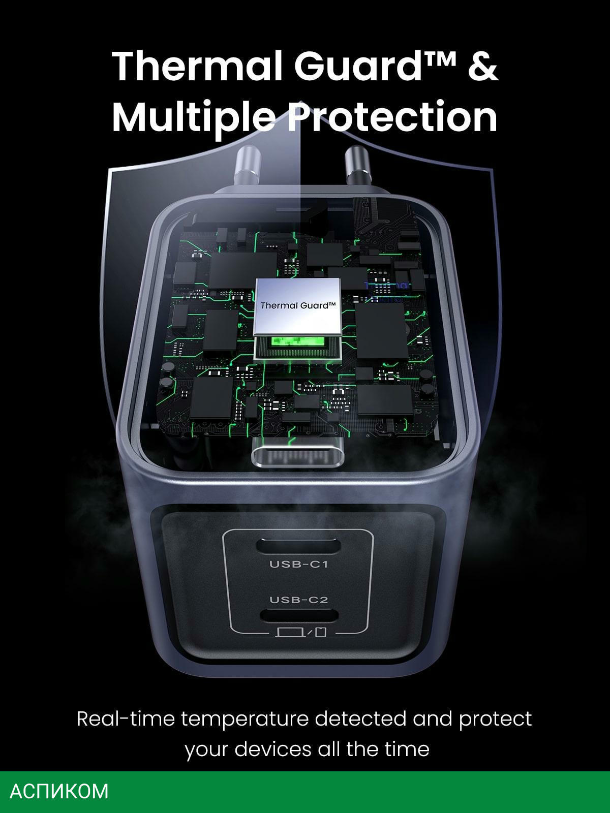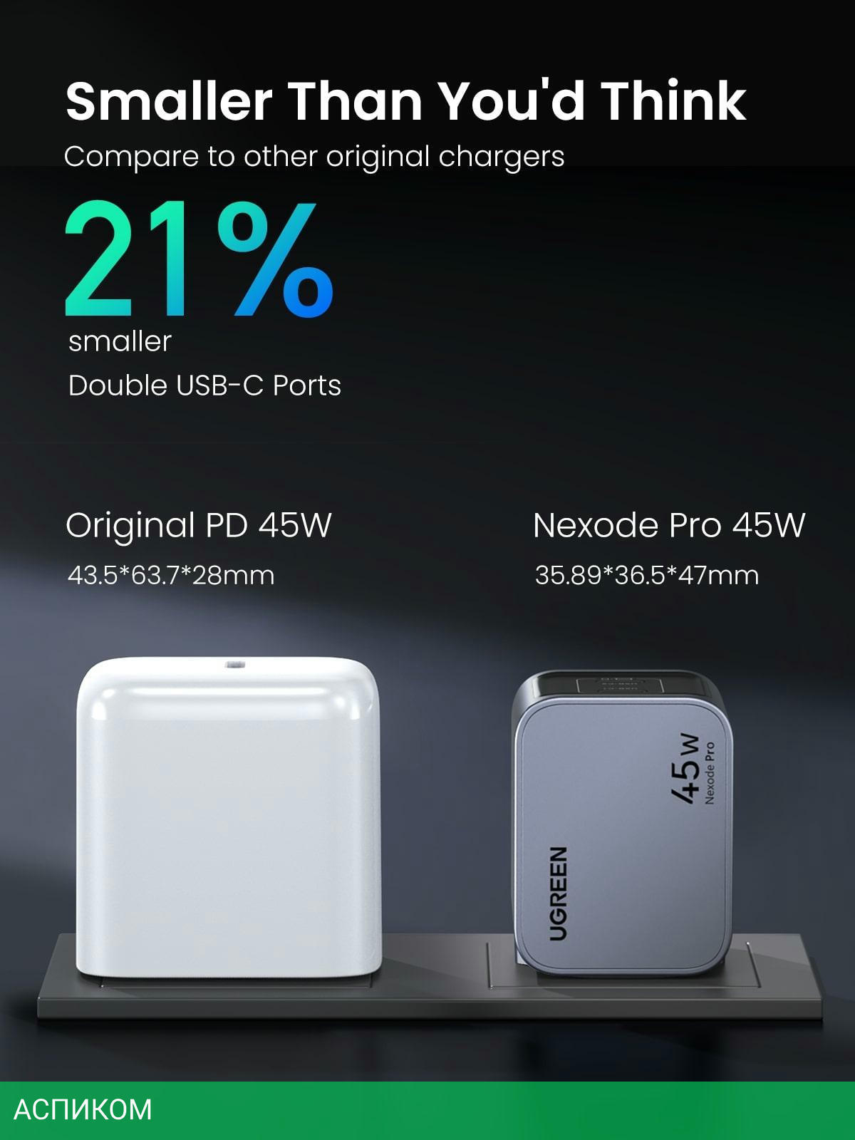 сетевое зарядное / для наушников; для ноутбуков; для планшетов; для телефонов / 2 / отсутствует (нужен кабель) / серый / USB Type-C / 45.0 / да