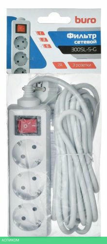 сетевой фильтр / серый / 3 / 5.0 / Schuko (евро с заземлением) / Schuko (евро с заземлением) / нет / нет / нет