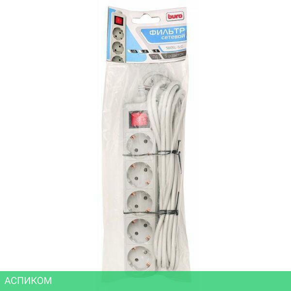 сетевой фильтр / серый / 5 / 5.0 / Schuko (евро с заземлением) / Schuko (евро с заземлением) / нет / нет / нет