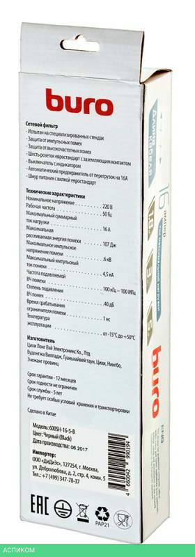 сетевой фильтр / черный / 6 / 5.0 / Schuko (евро с заземлением) / Schuko (евро с заземлением) / нет / нет / нет