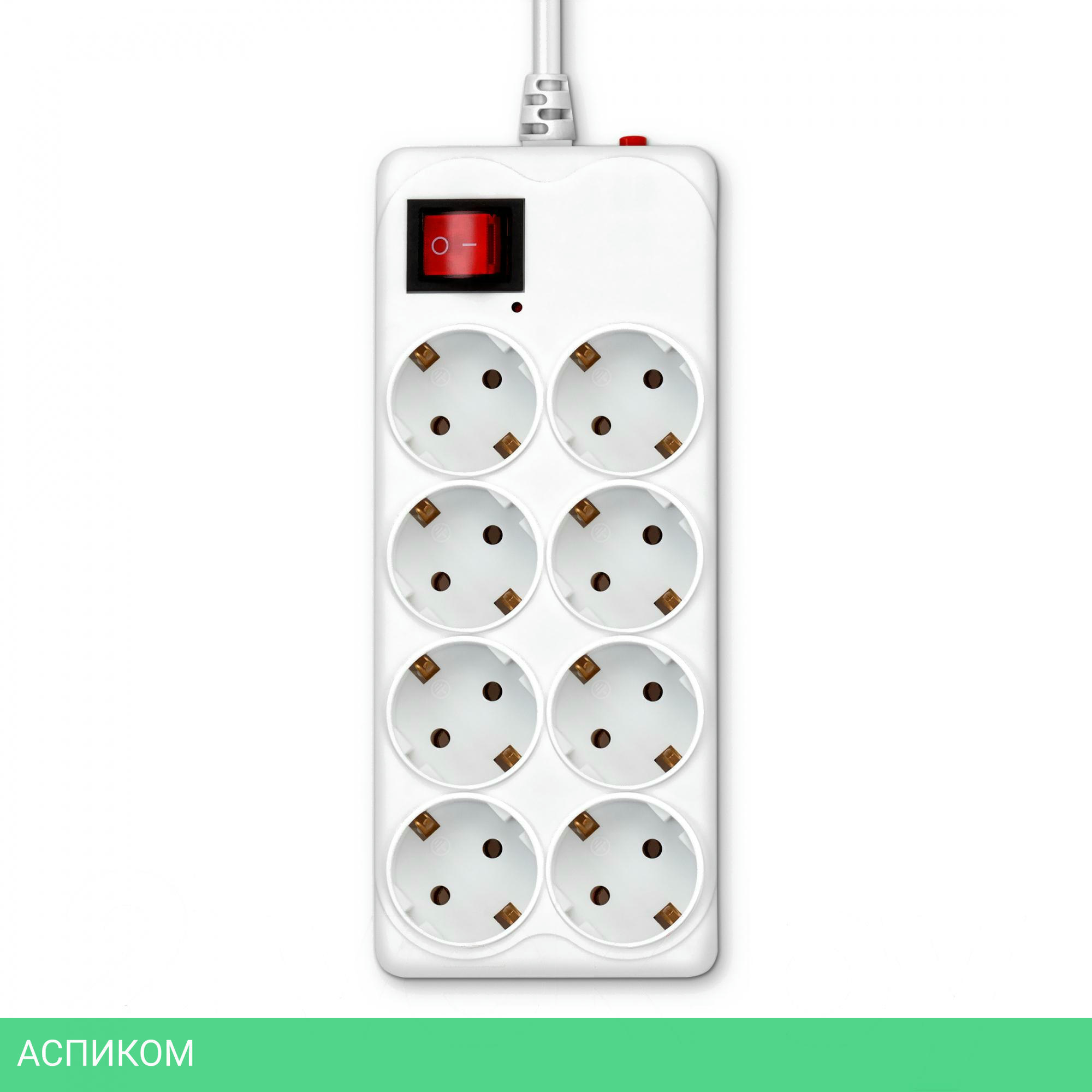 сетевой фильтр / 8 / 3.0 / Schuko (евро с заземлением) / белый / Schuko (евро с заземлением) / нет / нет / нет