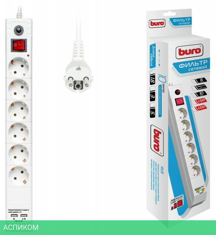 сетевой фильтр / 6 / 1.8 / Schuko (евро с заземлением) / белый / Schuko (евро с заземлением) / да / нет / нет