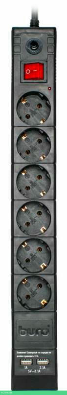 сетевой фильтр / 6 / 5.0 / Schuko (евро с заземлением) / черный / Schuko (евро с заземлением) / да / нет / нет