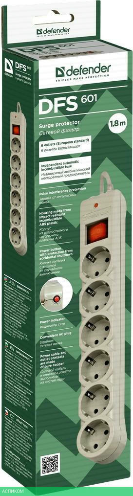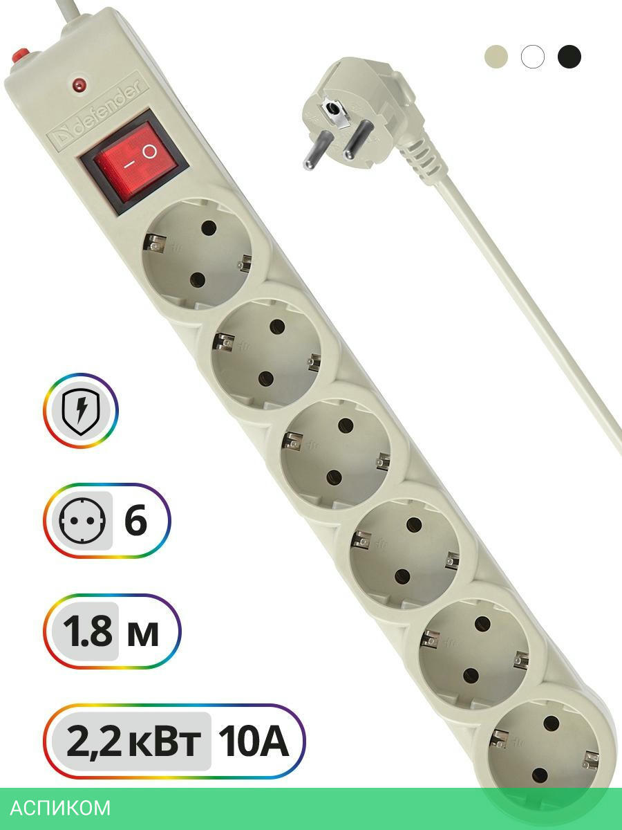 сетевой фильтр / 6 / 1.8 / Schuko (евро с заземлением) / белый / Schuko (евро с заземлением) / нет / нет / нет