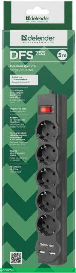 сетевой фильтр / черный / 5 / 5.0 / Schuko (евро с заземлением) / Schuko (евро с заземлением) / да / нет / нет