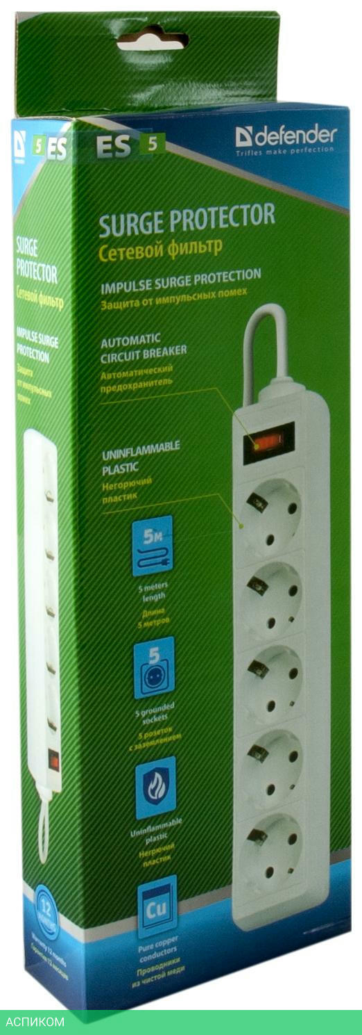 сетевой фильтр / 5 / 3.0 / Schuko (евро с заземлением) / белый / Schuko (евро с заземлением) / нет / нет / нет