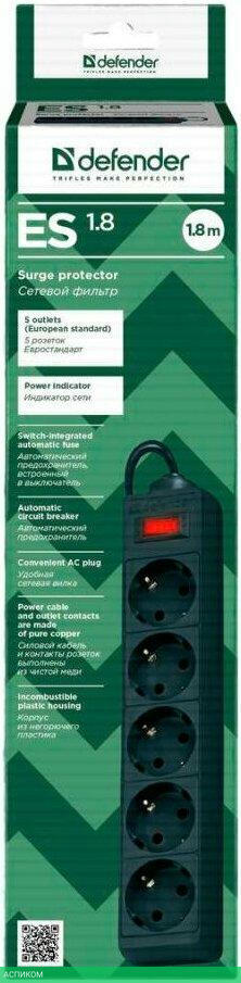 сетевой фильтр / 5 / 1.8 / Schuko (евро с заземлением) / черный / Schuko (евро с заземлением) / нет / нет / нет