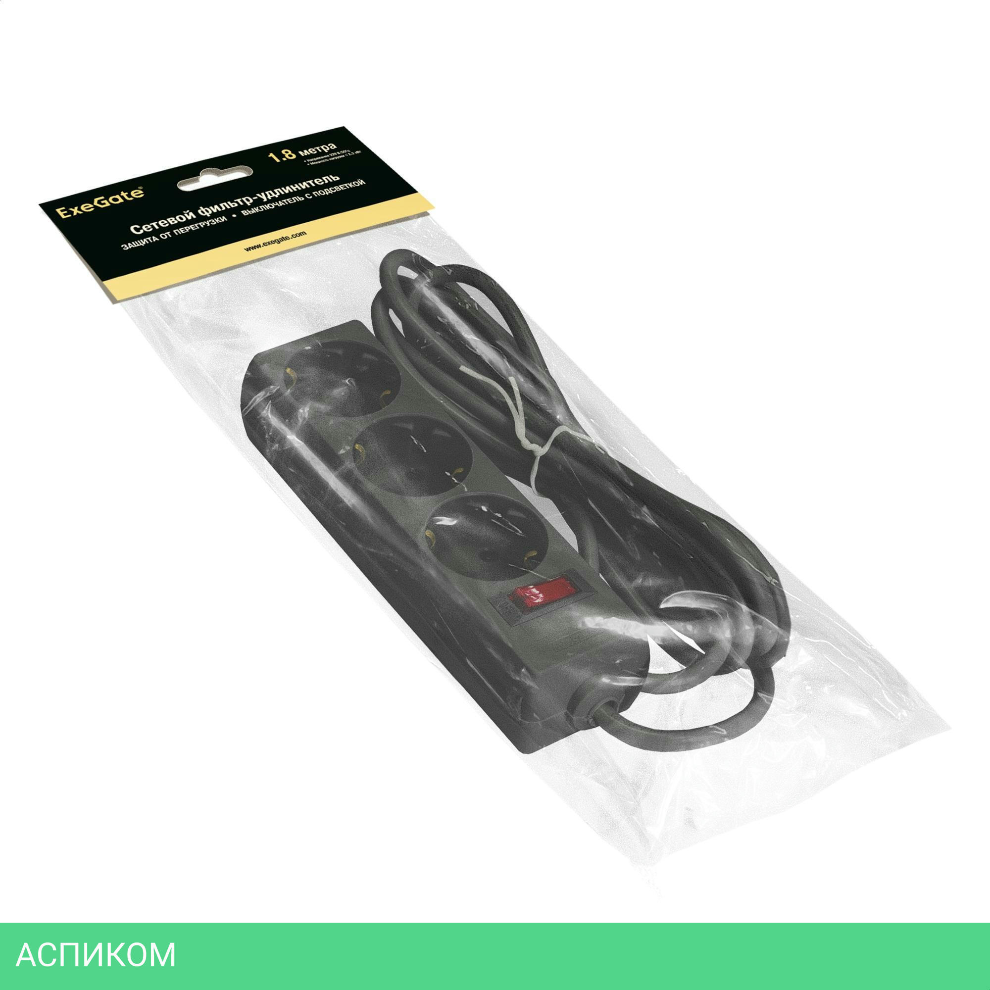 сетевой фильтр / 3 / 1.8 / черный / нет / нет / нет