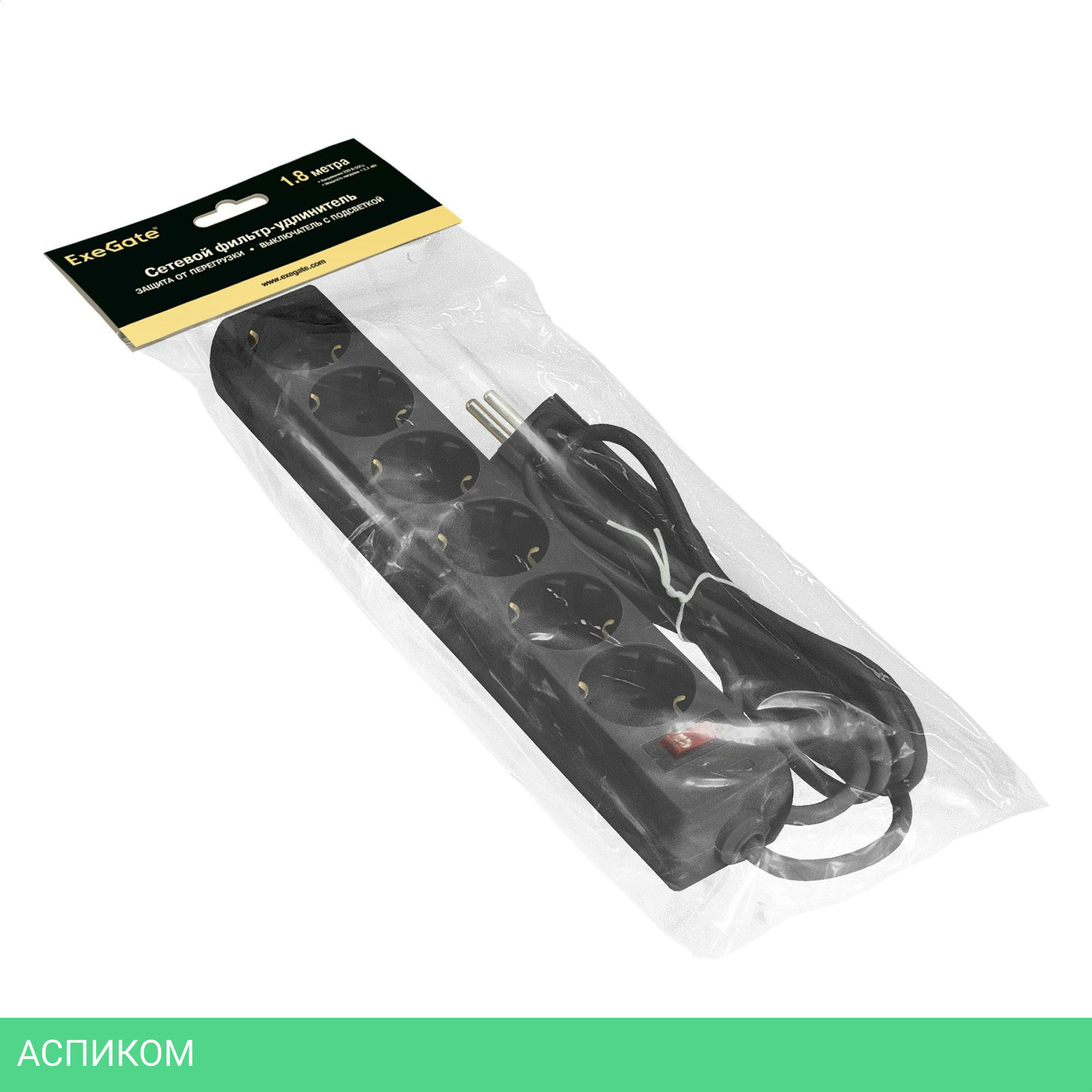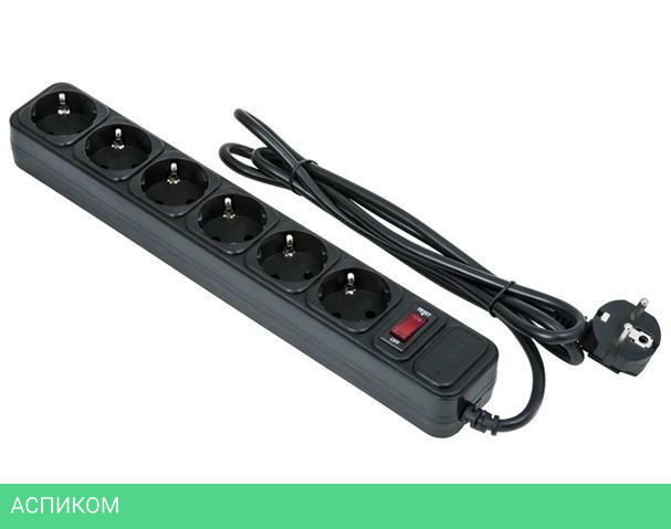 сетевой фильтр / черный / 6 / 1.8 / Schuko (евро с заземлением) / Schuko (евро с заземлением) / нет / нет / нет