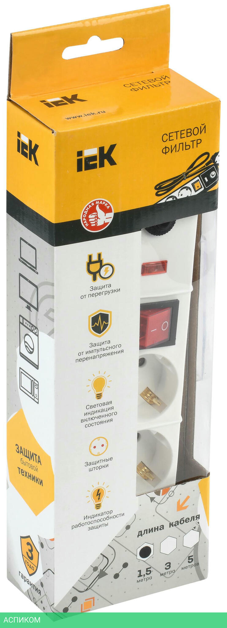 сетевой фильтр / 3 / 1.5 / Schuko (евро с заземлением) / белый / Schuko (евро с заземлением) / нет / нет / нет