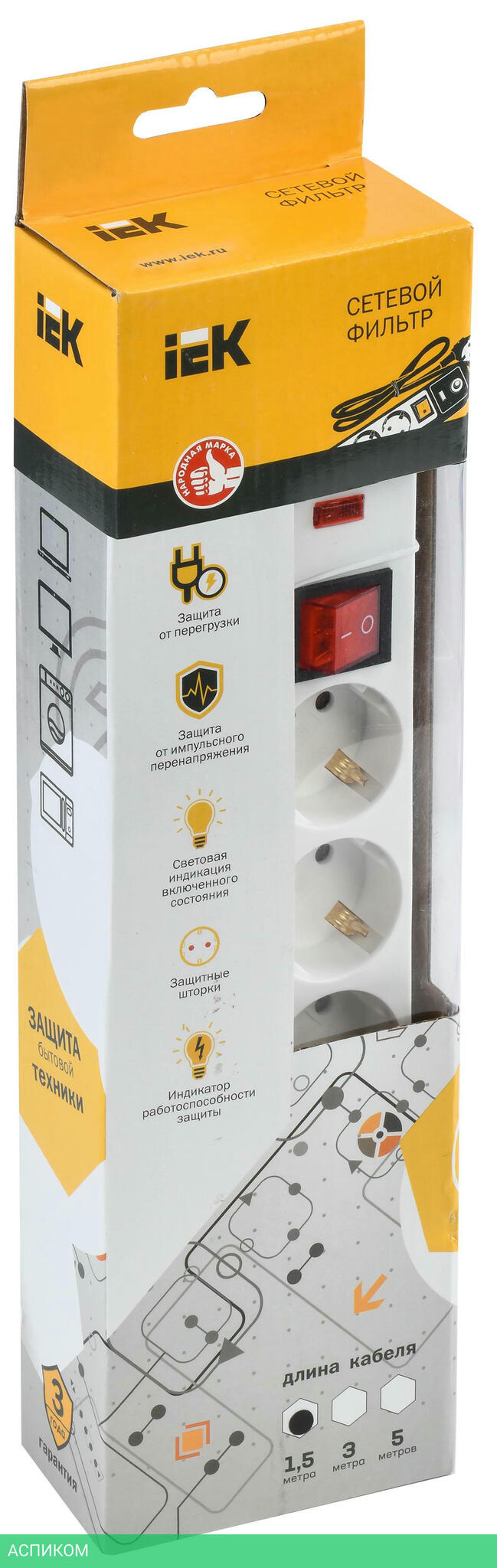 сетевой фильтр / 5 / 1.5 / Schuko (евро с заземлением) / белый / Schuko (евро с заземлением) / нет / нет / нет