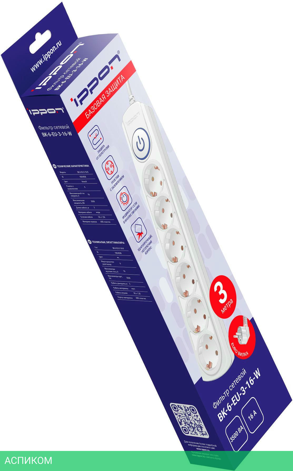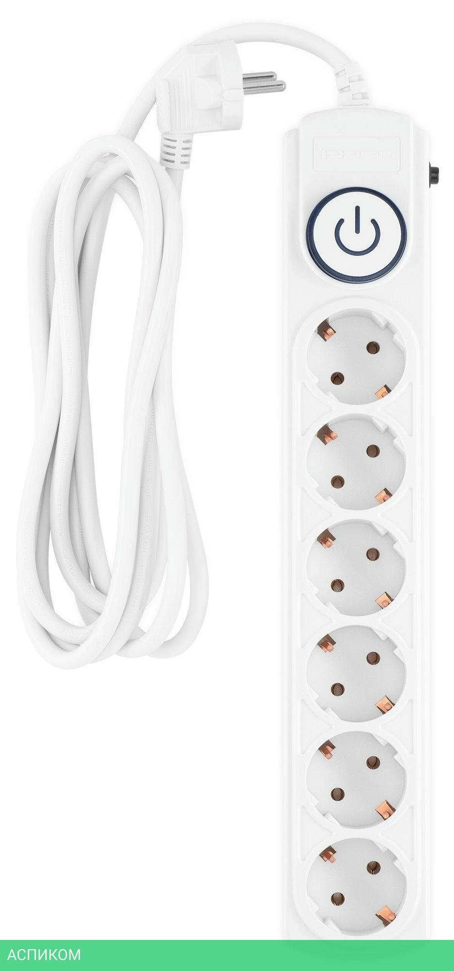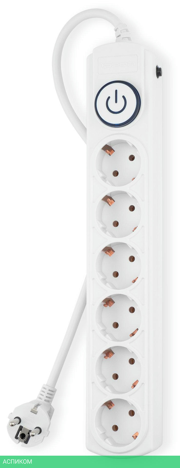 сетевой фильтр / 6 / 3.0 / белый / Schuko (евро с заземлением) / нет / нет / нет