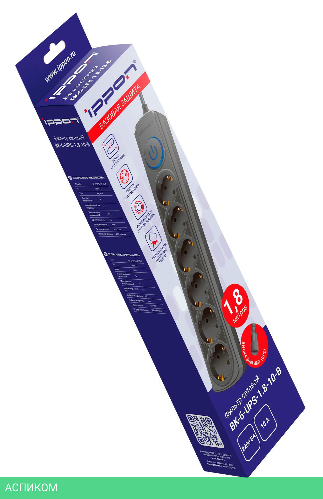 сетевой фильтр / 6 / 1.8 / Schuko (евро с заземлением) / черный / Schuko (евро с заземлением) / нет / нет / нет