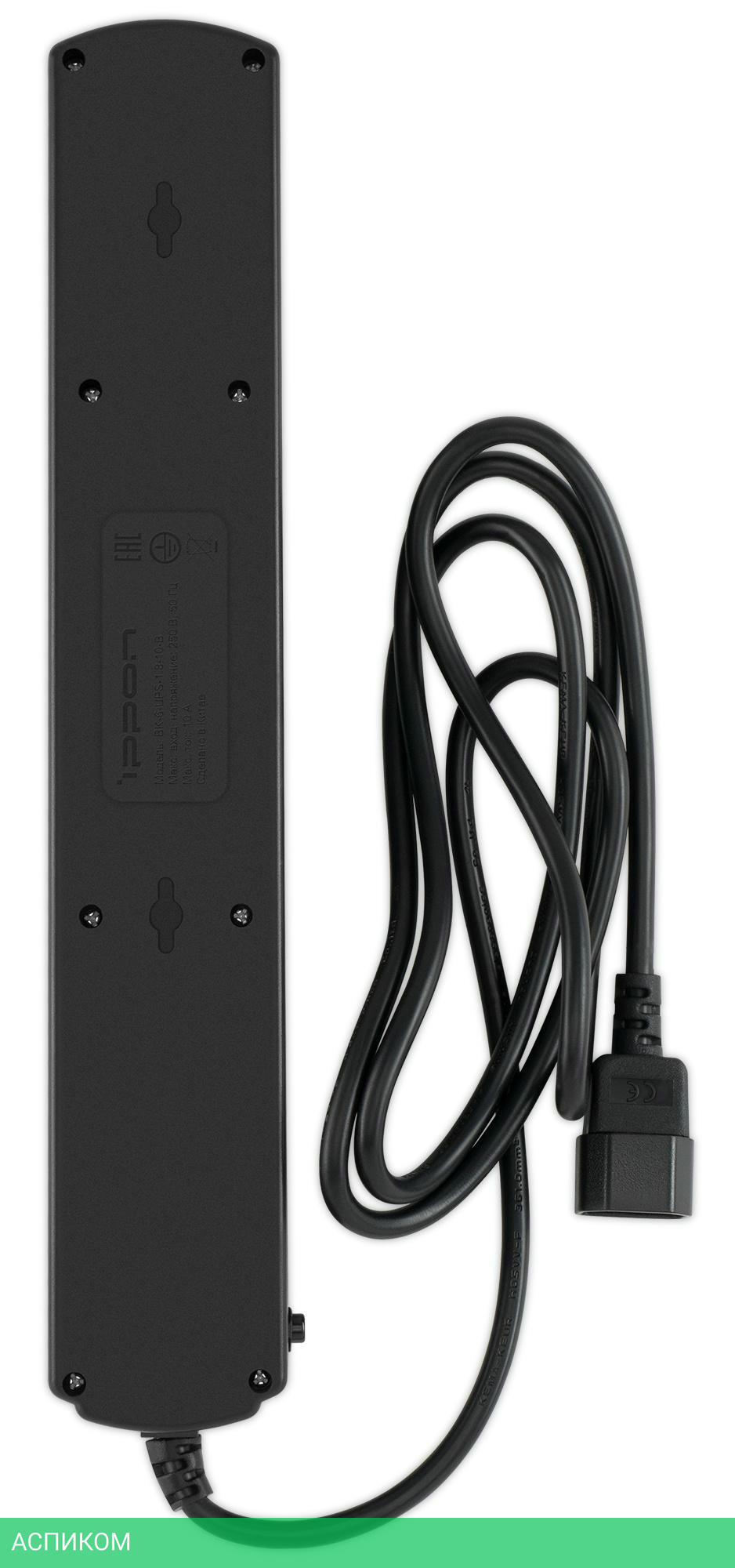6 евророзеток с заземлением. Входная вилка IEC 320 (для подключения к ИБП). Защита от перегрузки. Защита от импульсов высокого напряжения. Защита от перетирания провода в месте входа в корпус фильтра. Ударопрочный негорючий корпус. Кнопка питания с индикатором сети.