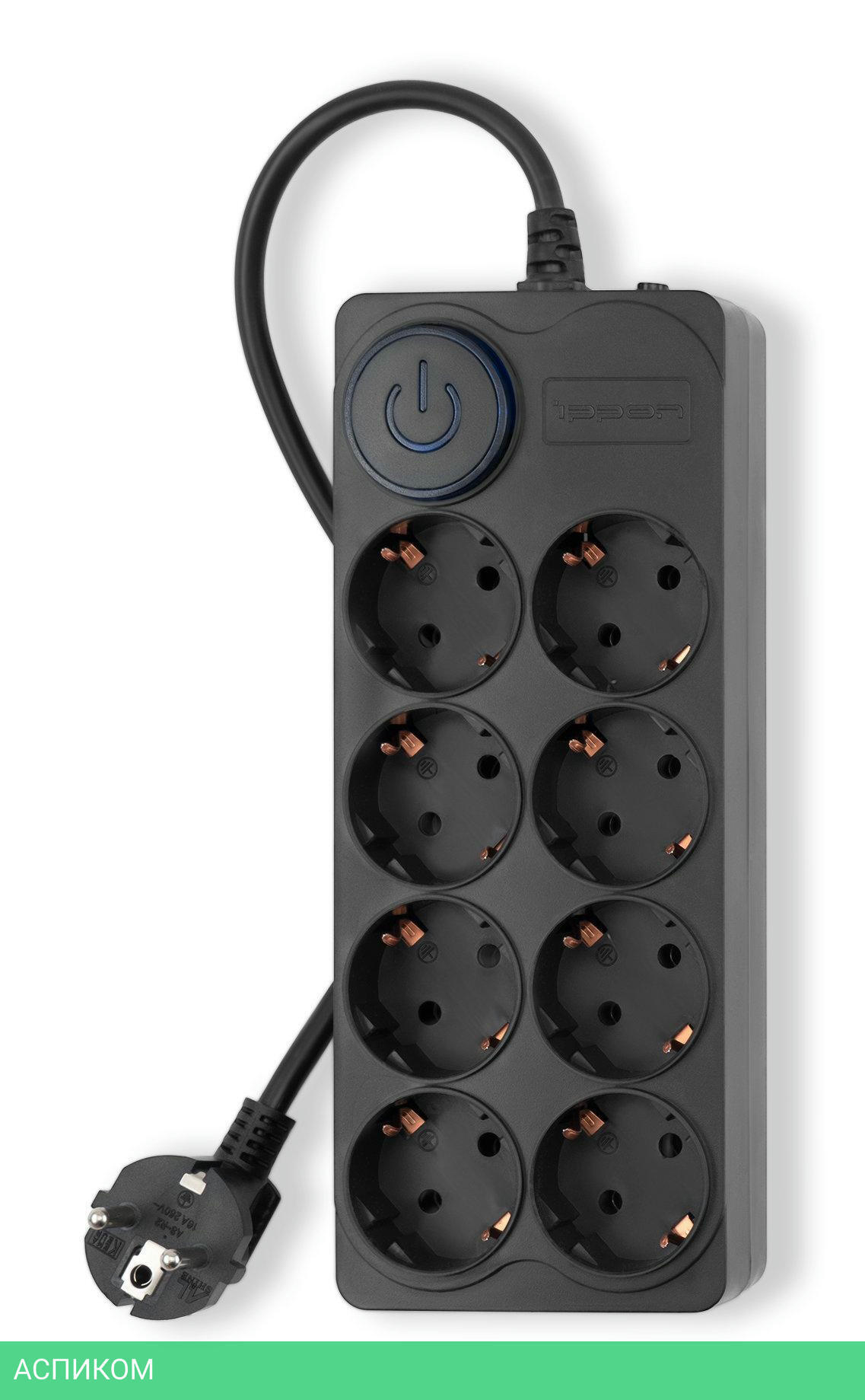 сетевой фильтр / 8 / 3.0 / Schuko (евро с заземлением) / черный / Schuko (евро с заземлением) / нет / нет / нет
