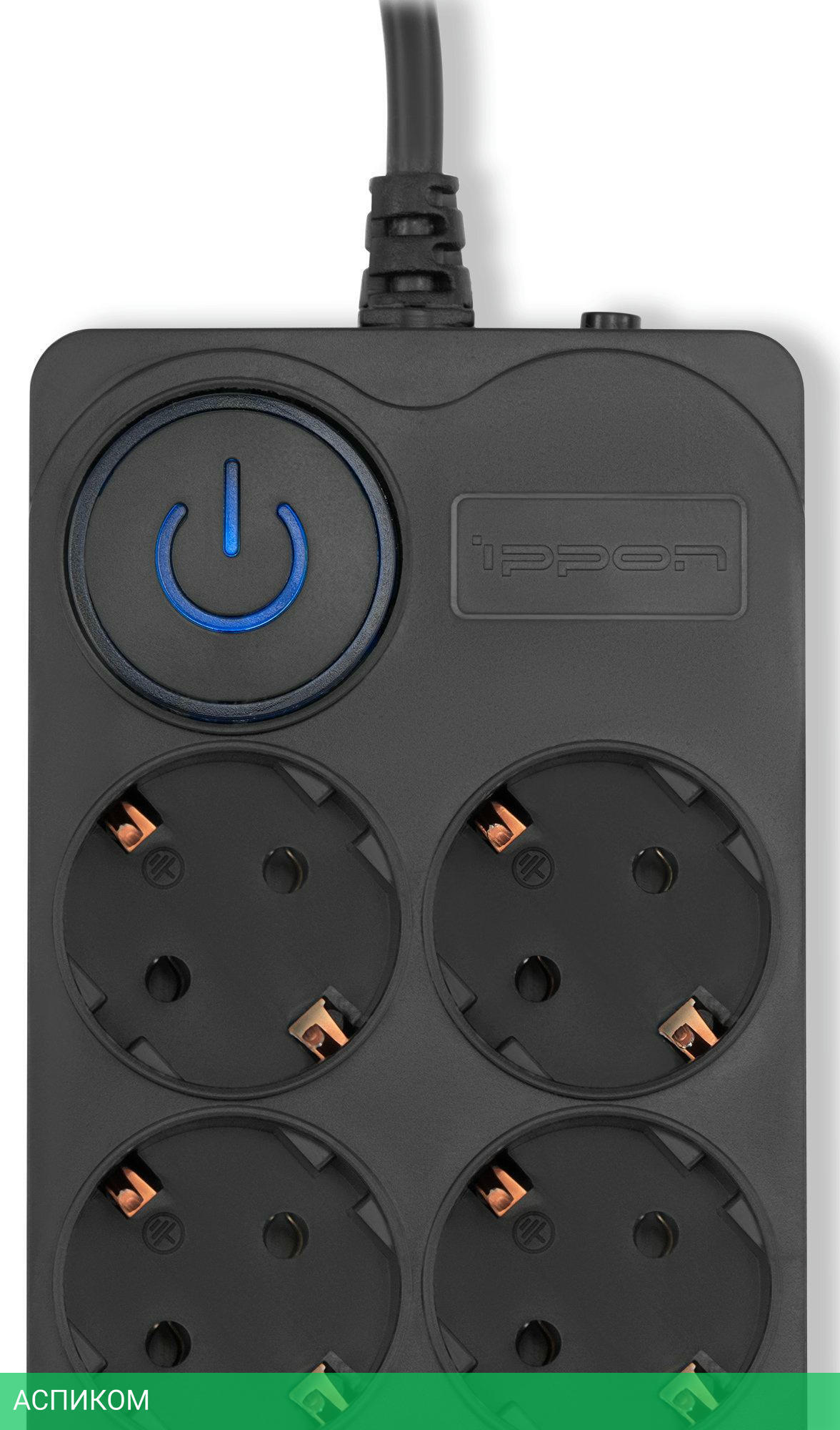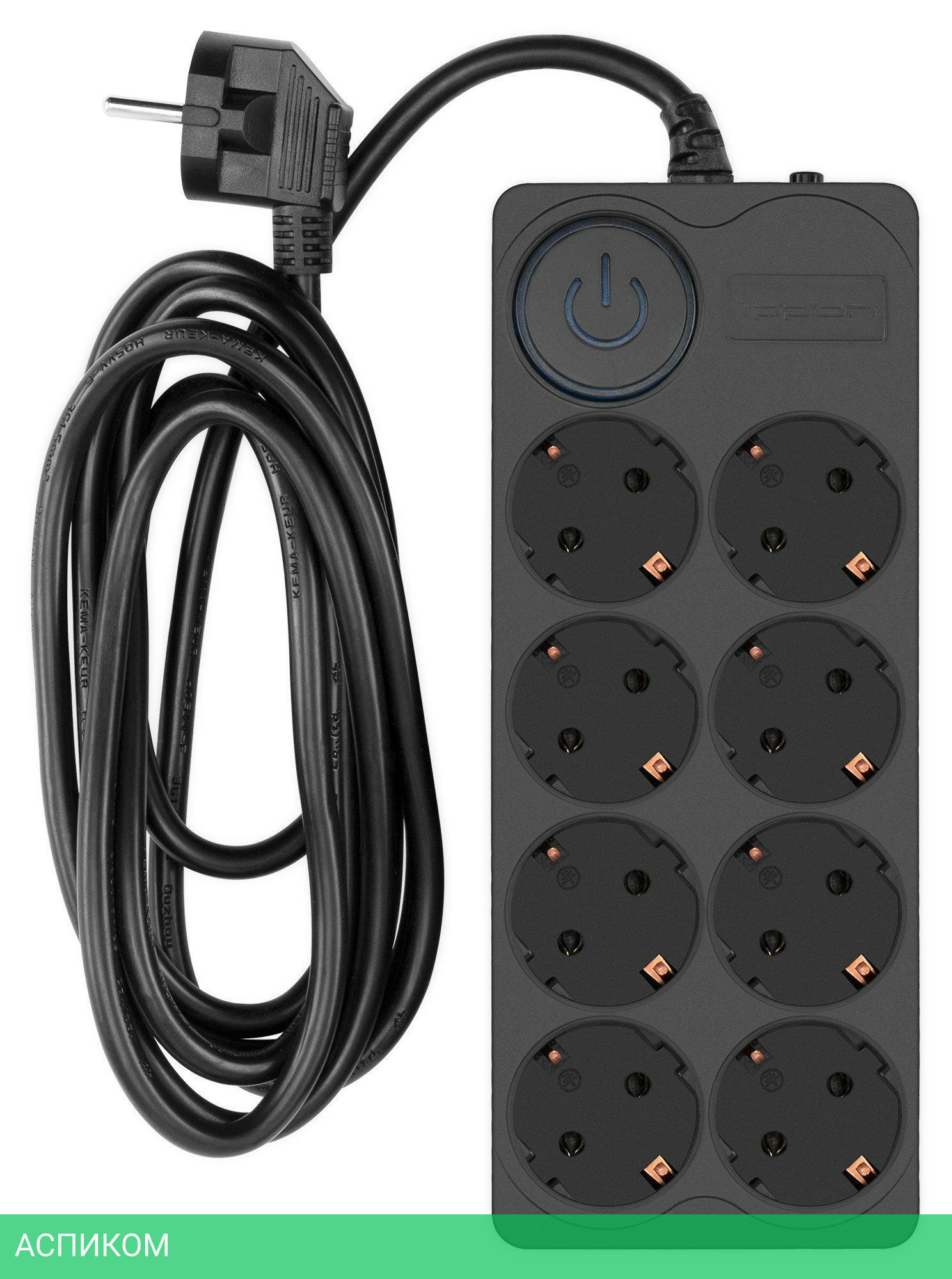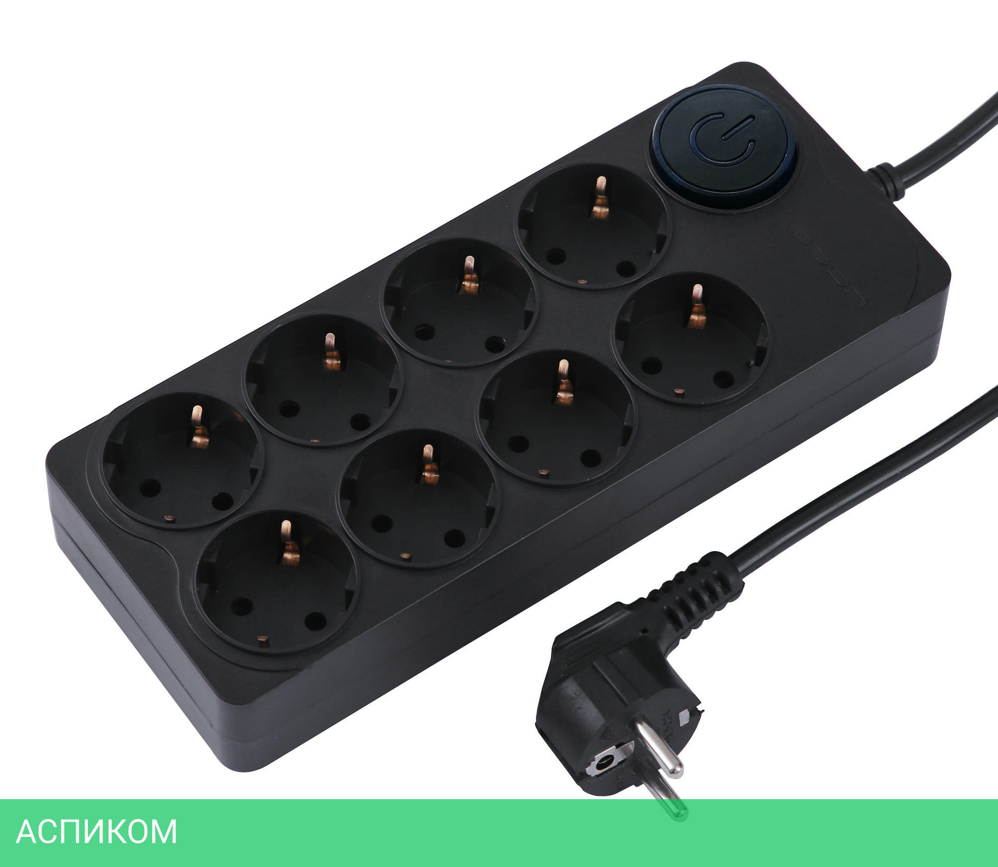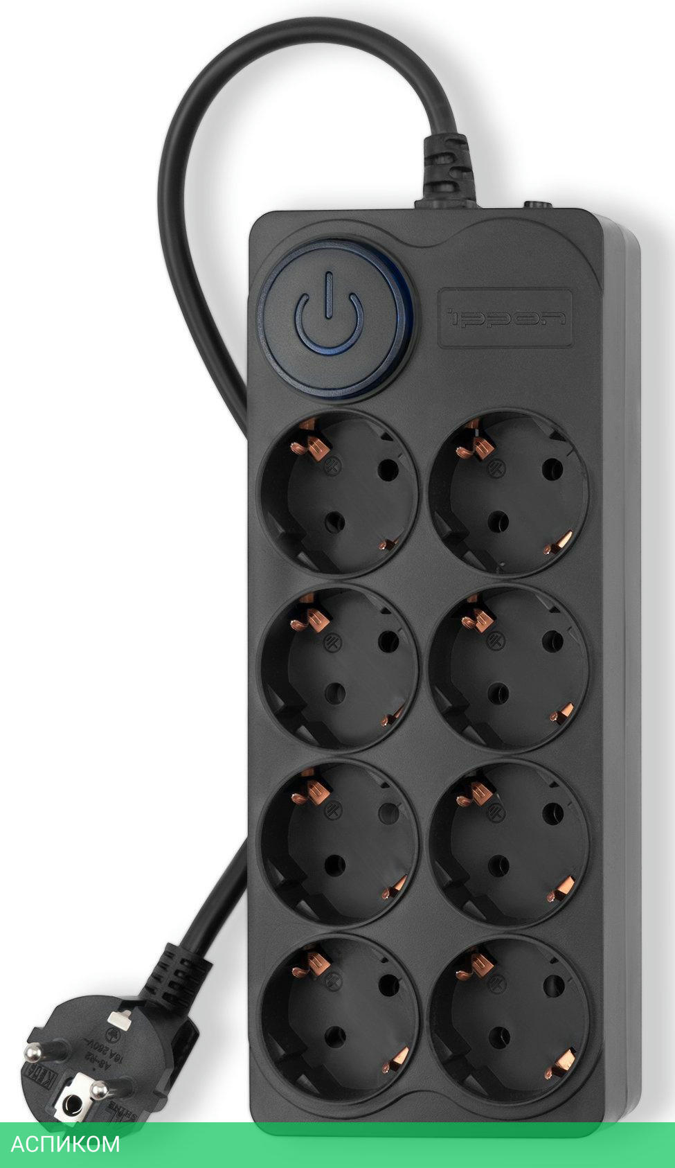 8 евророзеток с заземлением. Входная вилка Schuko. Защита от перегрузки. Защита от импульсов высокого напряжения. Защита от перетирания провода в месте входа в корпус фильтра. Ударопрочный негорючий корпус. Кнопка питания с индикатором сети.