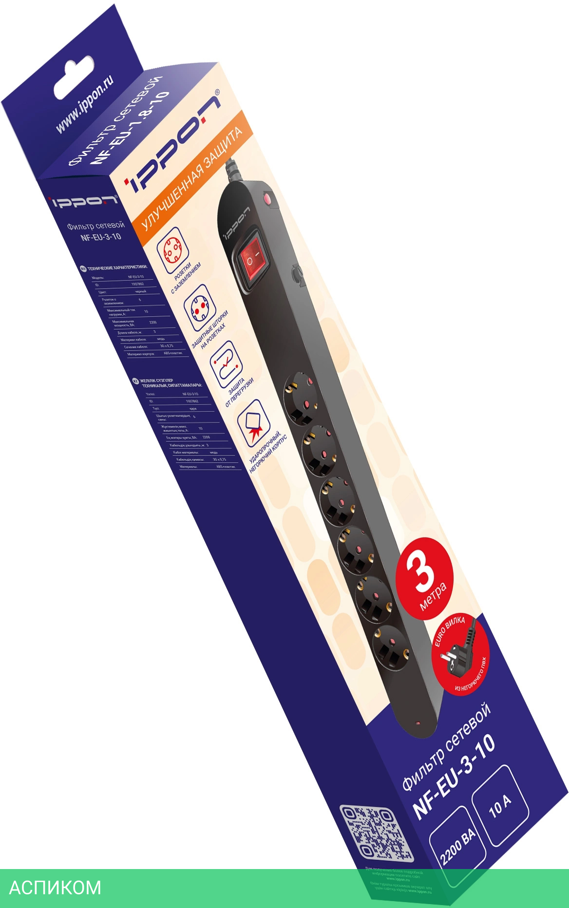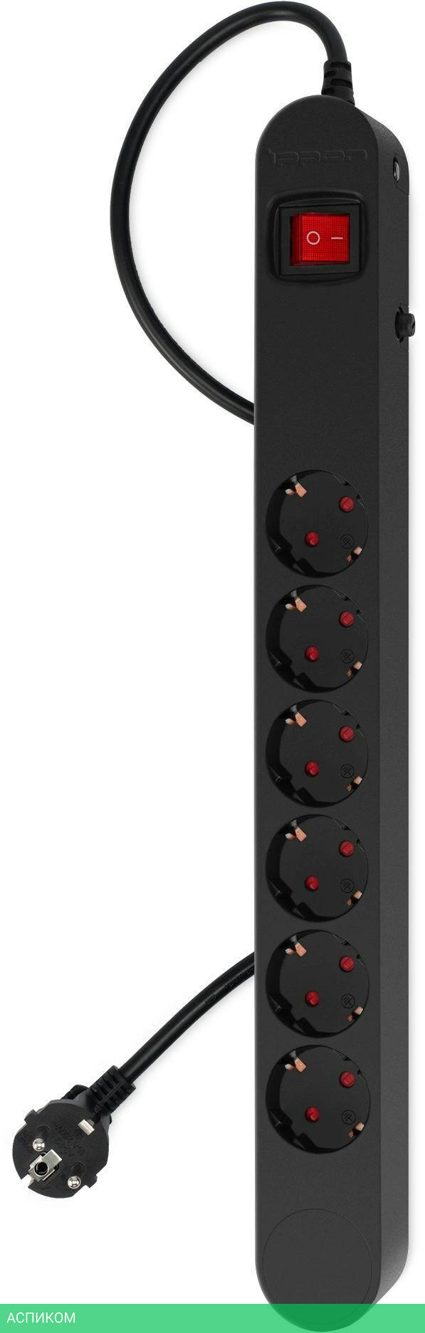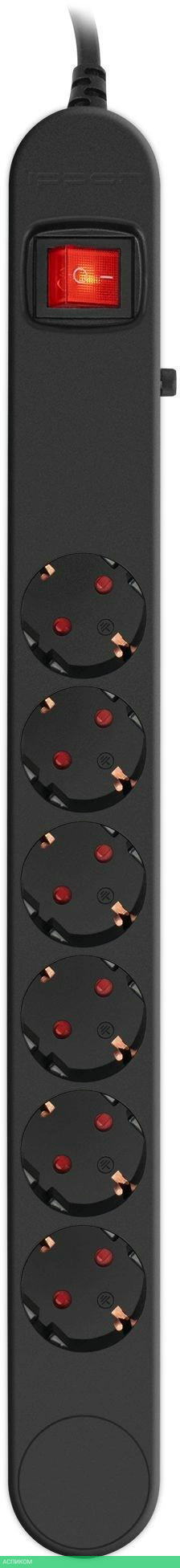 сетевой фильтр / черный / 6 / 3.0 / Schuko (евро с заземлением) / Schuko (евро с заземлением) / нет / да / нет