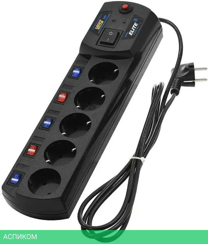 сетевой фильтр / черный / 5 / 5.0 / Schuko (евро с заземлением) / Schuko (евро с заземлением) / нет / нет / да