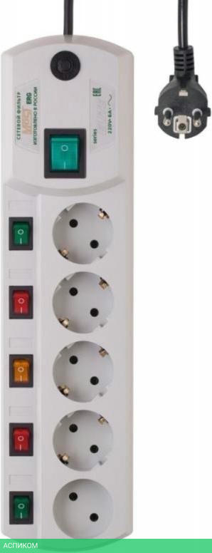 сетевой фильтр / 5 / 5.0 / Schuko (евро с заземлением) / белый / Schuko (евро с заземлением) / нет / нет / да