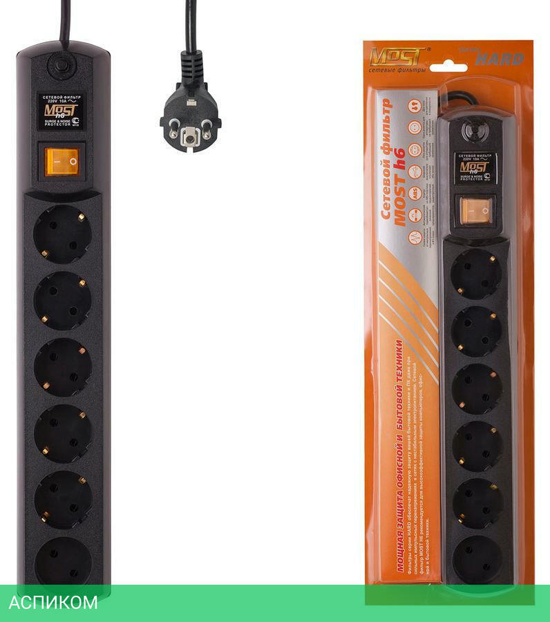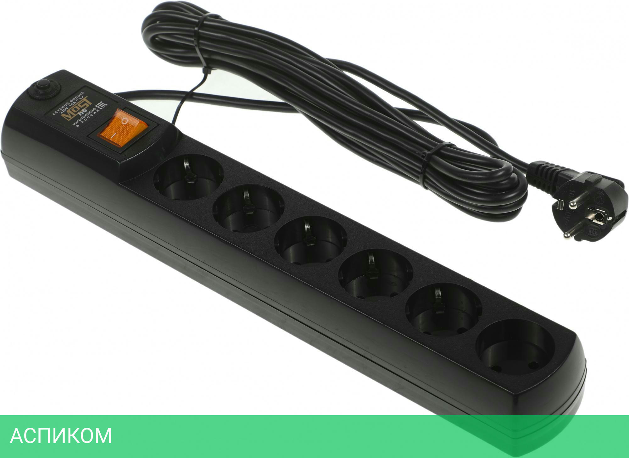сетевой фильтр / 6 / 5.0 / Schuko (евро с заземлением) / черный / Schuko (евро с заземлением); Schuko (евро без заземления) / нет / нет / нет