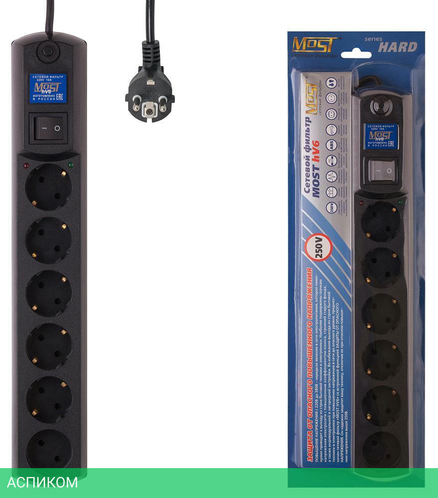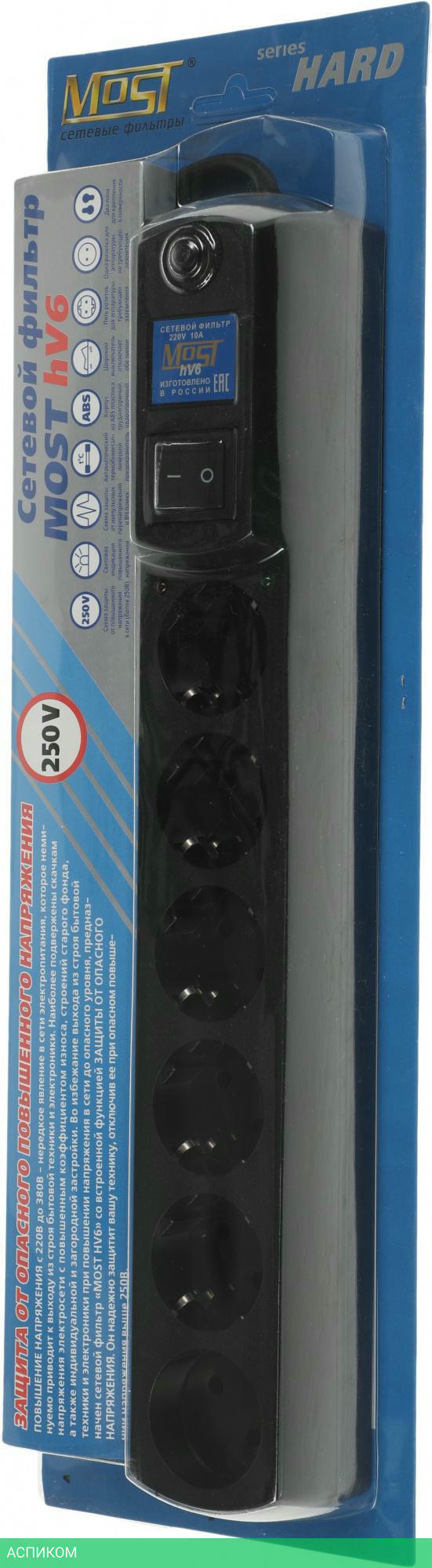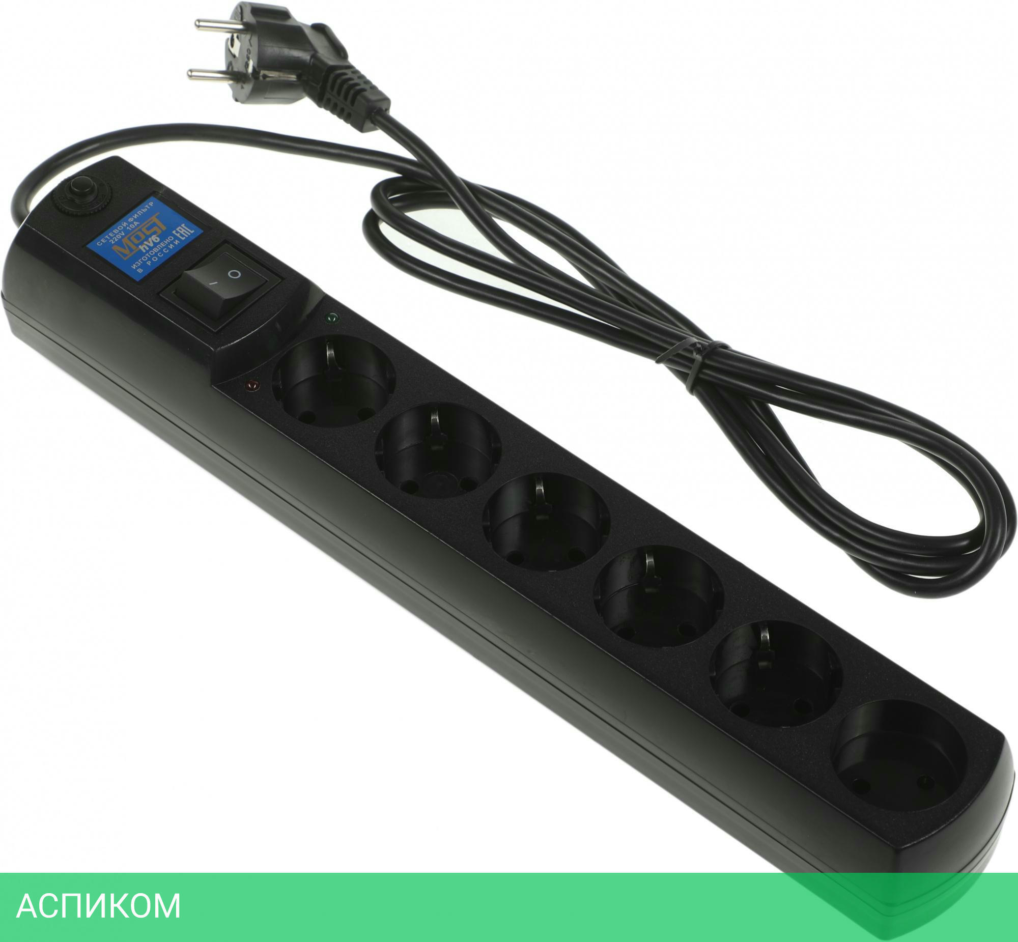 сетевой фильтр / 6 / 2.0 / Schuko (евро с заземлением) / черный / Schuko (евро с заземлением); Schuko (евро без заземления) / нет / нет / нет