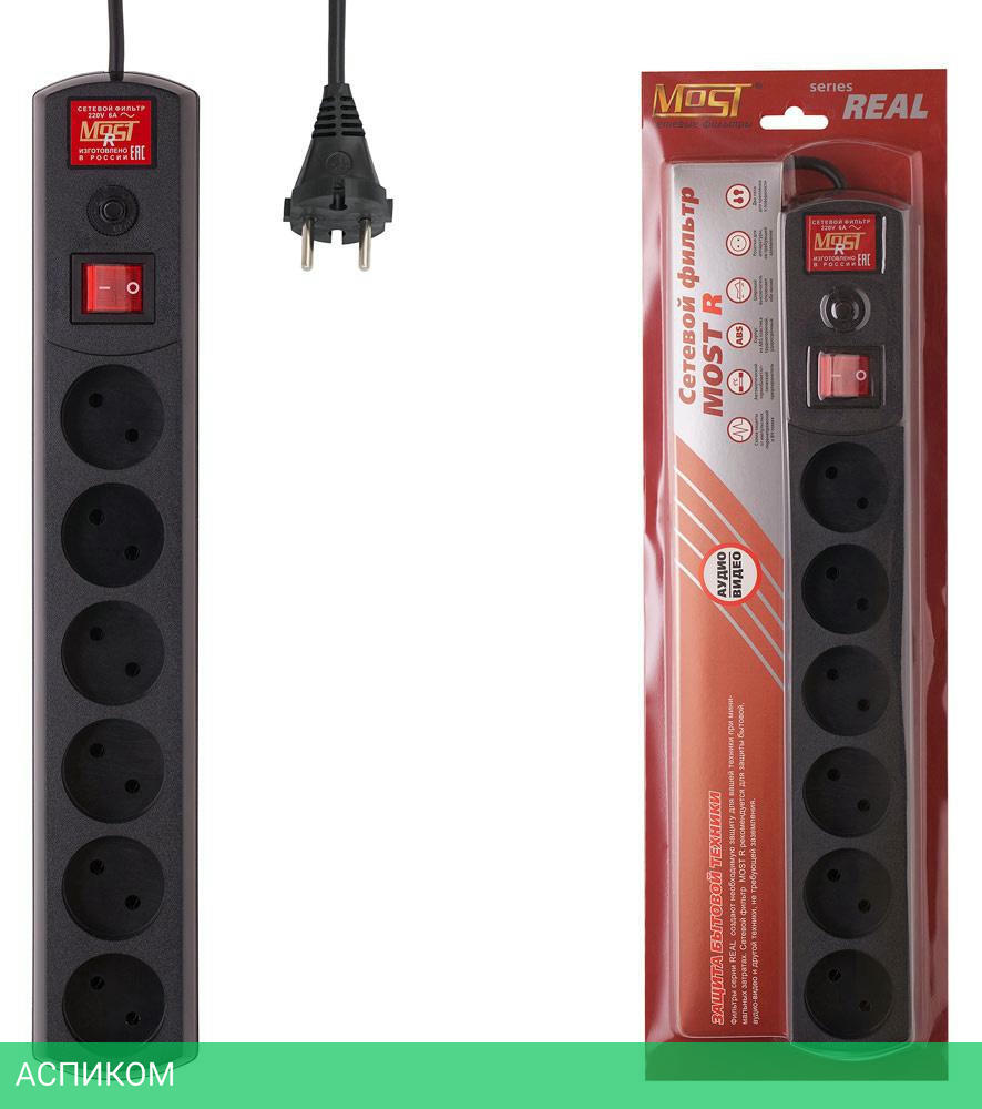 сетевой фильтр / черный / 6 / 2.0 / нет