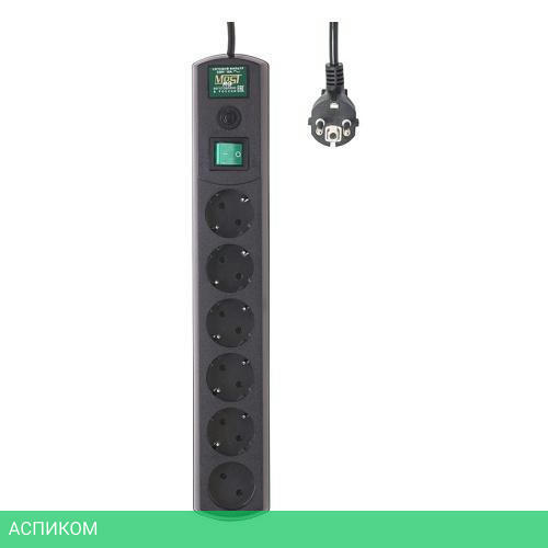 сетевой фильтр / 6 / 5.0 / черный / Schuko (евро с заземлением) / нет / нет / нет