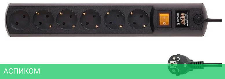сетевой фильтр / 6 / 2.0 / Schuko (евро с заземлением) / черный / Schuko (евро с заземлением); Schuko (евро без заземления) / нет / нет / нет