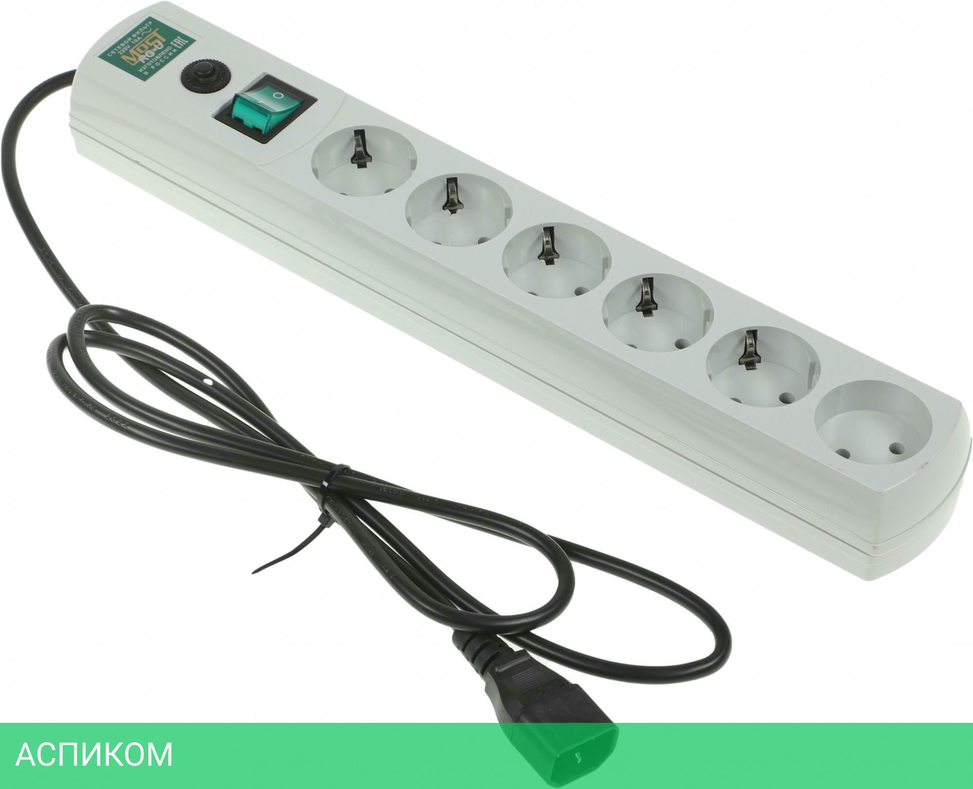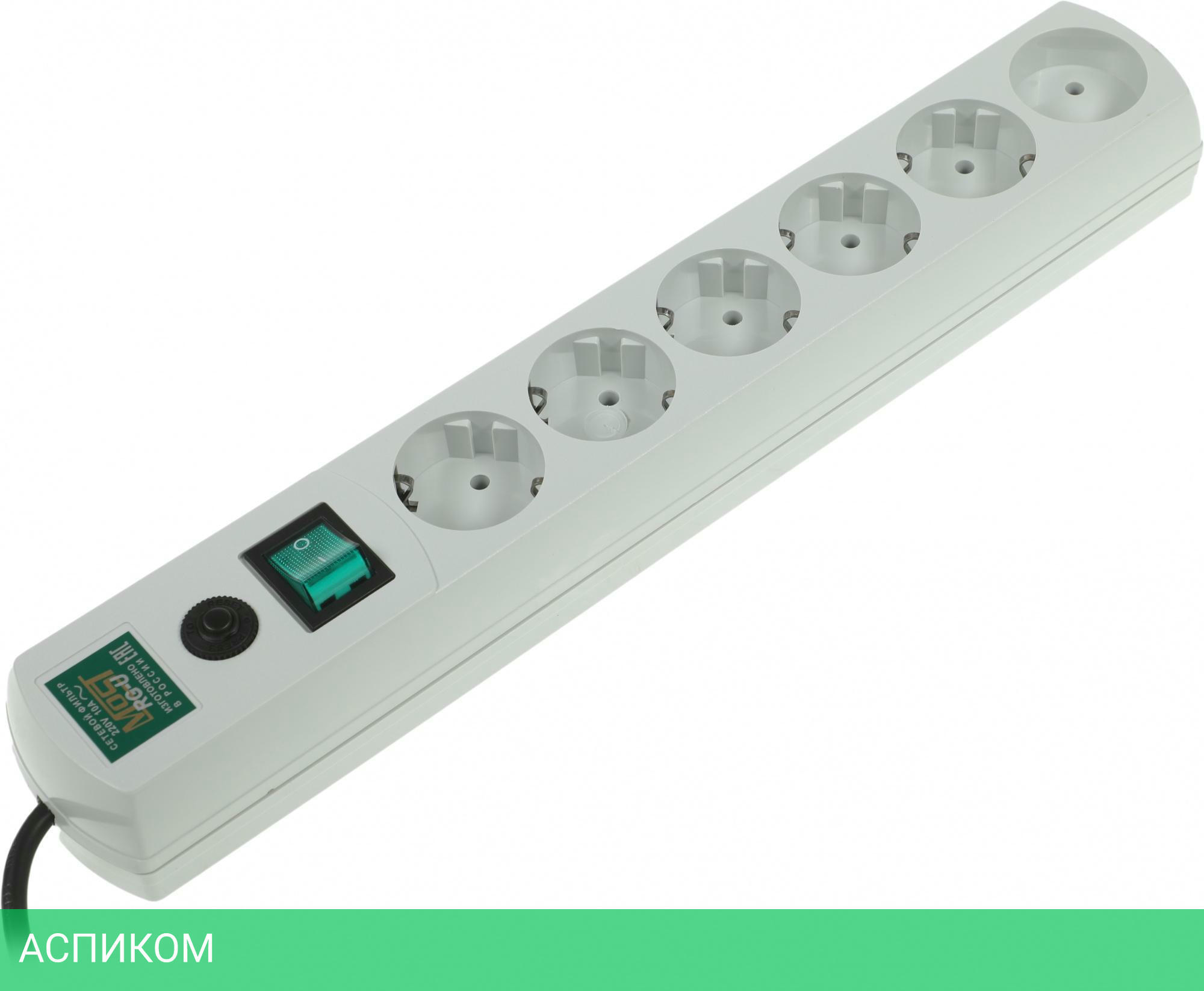 сетевой фильтр / 6 / 1.5 / IEC320-C14 / белый / Schuko (евро с заземлением); Schuko (евро без заземления) / нет / нет / нет