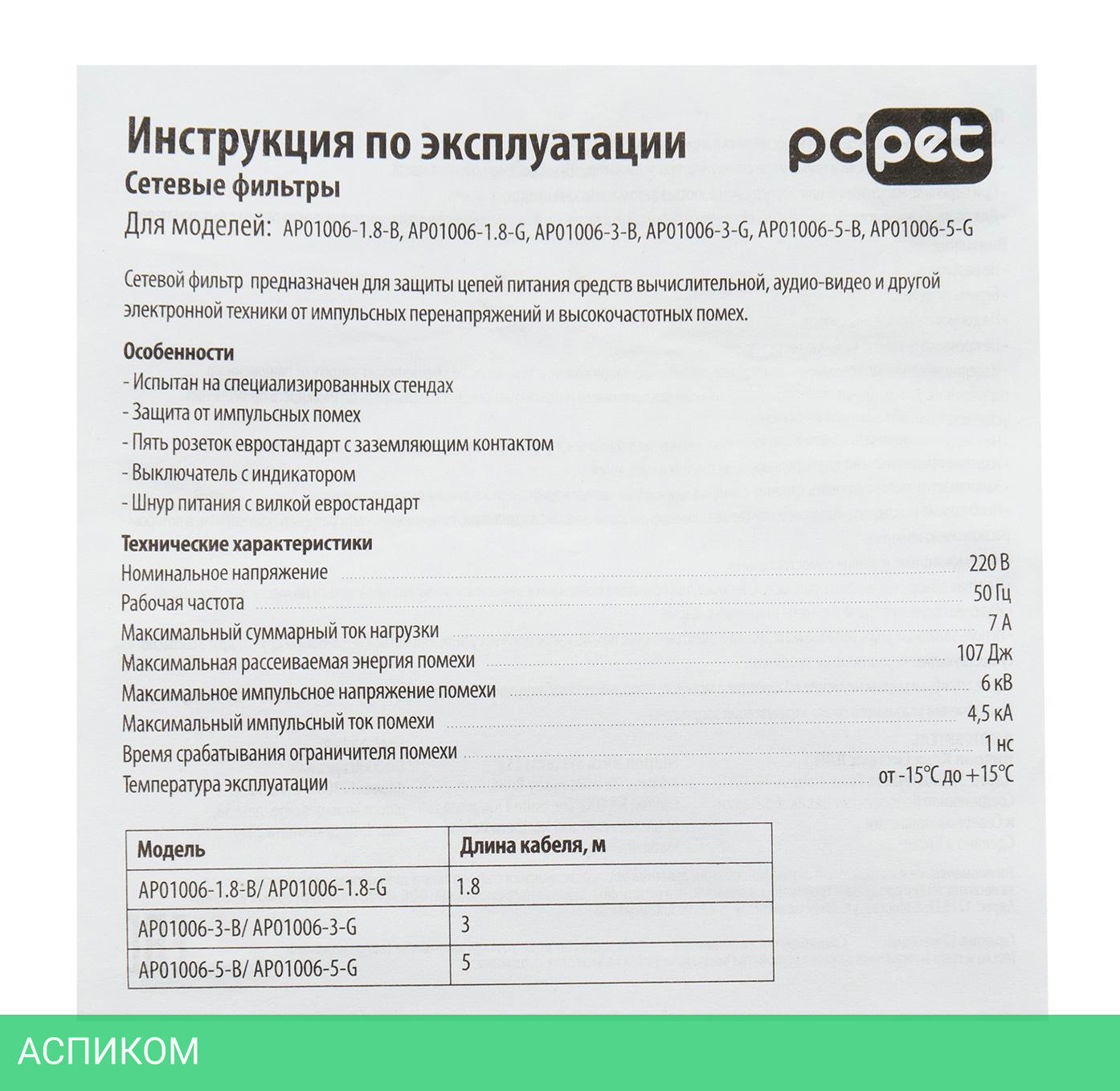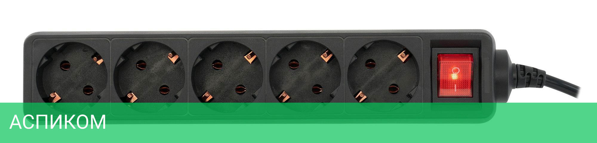 сетевой фильтр / черный / 5 / 1.8 / Schuko (евро с заземлением) / Schuko (евро с заземлением) / нет / нет / нет
